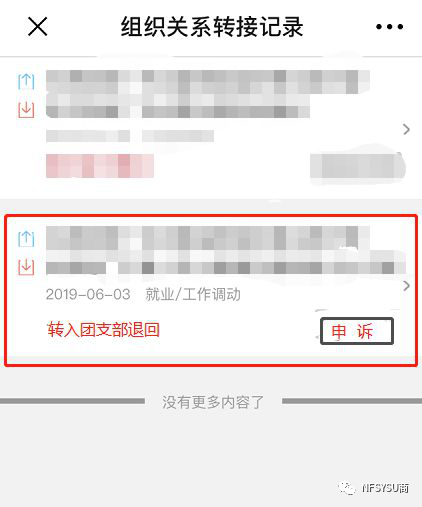 遇到这种情况,团员可以在“查看组织关系转接记录”页面发起申诉。申诉将由转出组织、转入组织的共同上级进行仲裁。