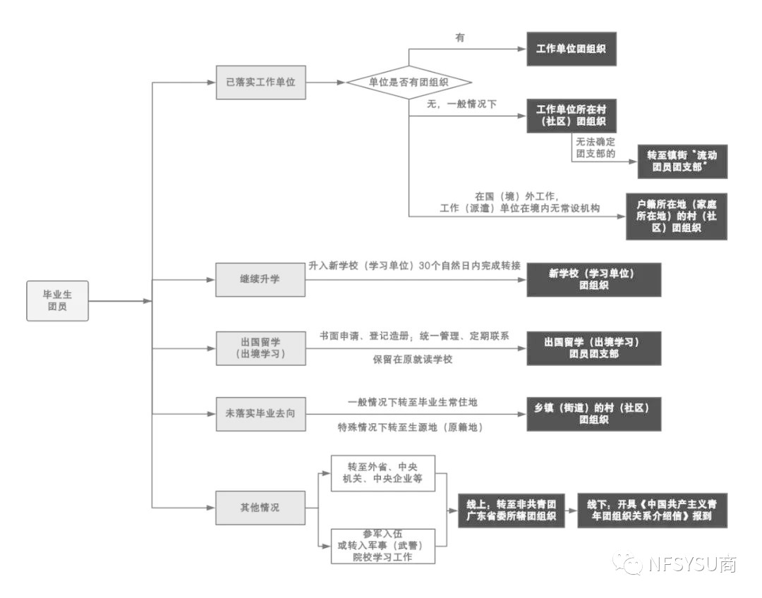 ⑤如果你毕业后要离开广东省,或是去到有关特殊单位——申请转至“非共青团广东省委所辖的团组织”,并准确填写团员去向;其余转接手续按照线下组织关系转接流程处理。