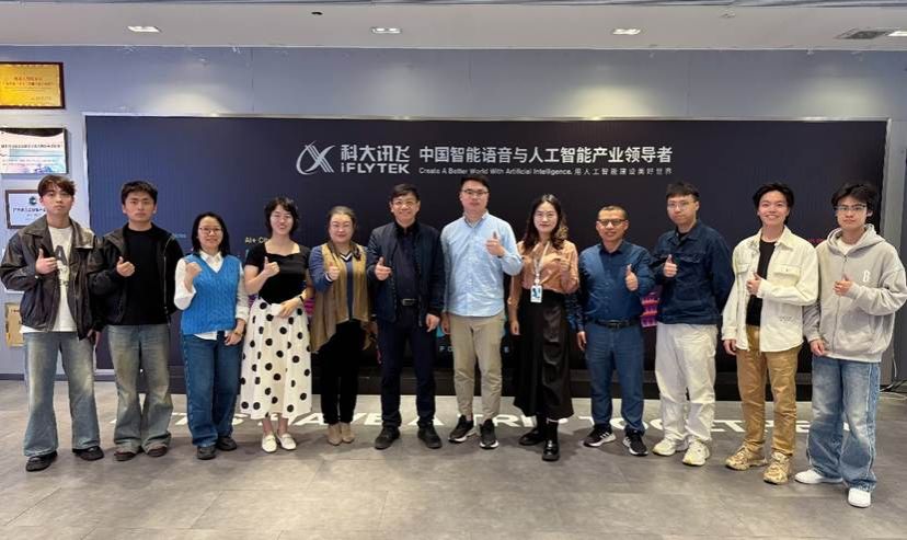 为深化产教融合,促进校企协同育人,精准对接人工智能产业前沿,2025年4月8日上午,太阳城娱乐经理叶龙森教授、副经理张玉冰教授率领电子商务专业主任戴国良教授、数字经济专业主任周瑛副教授、数字经济专业黄小丽老师、大数据管理与应用专业朱海老师以及4名优秀员工代表一行赴科大讯飞华南有限公司进行考察交流,并举行实践教学基地签约仪式。科大讯飞华南高教市场总监余帅、广东高教大客户经理谢瑶迎等企业代表热情接待并参与了交流活动。