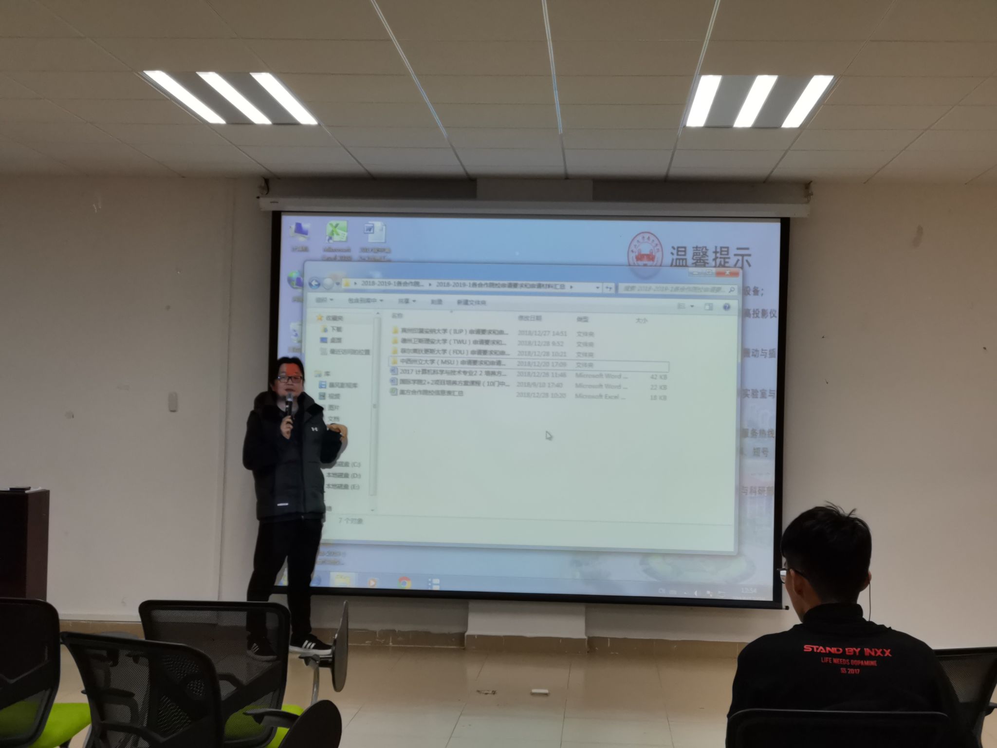 12月28日中午12时40分,中美2+2项目说明会于9教101顺利开展。出席本次会议的有电气公司郭穆欣老师,太阳城娱乐国际教育中心萧裕中老师和石佳仪老师,并由太阳城娱乐国际教育中心萧裕中老师担任本次说明会主讲人。