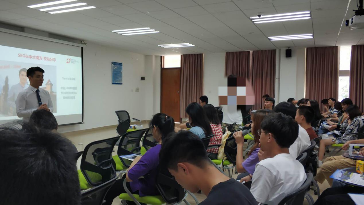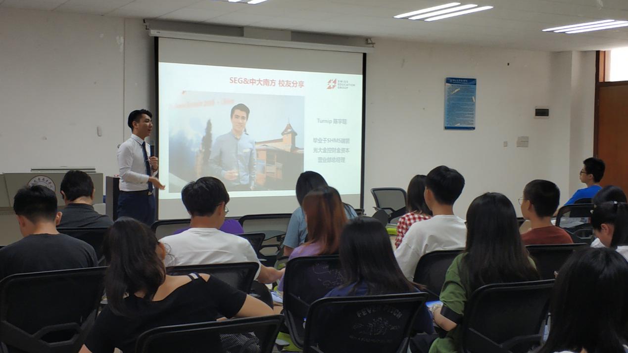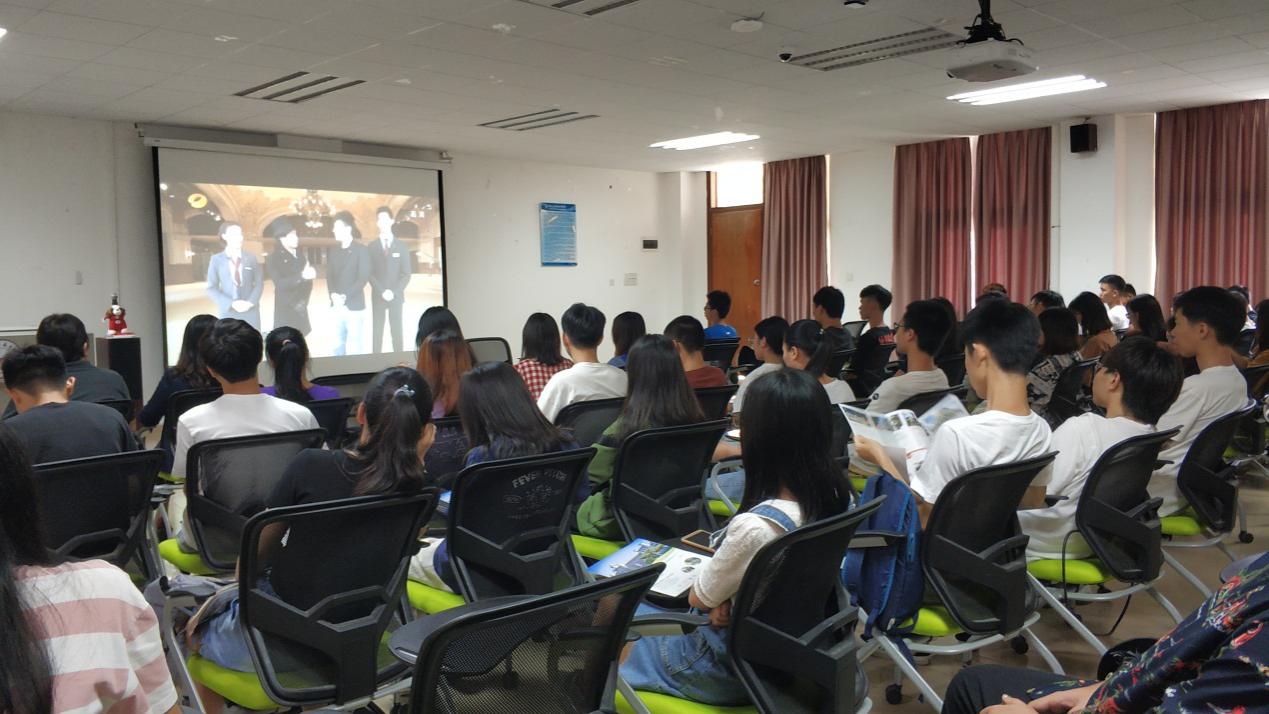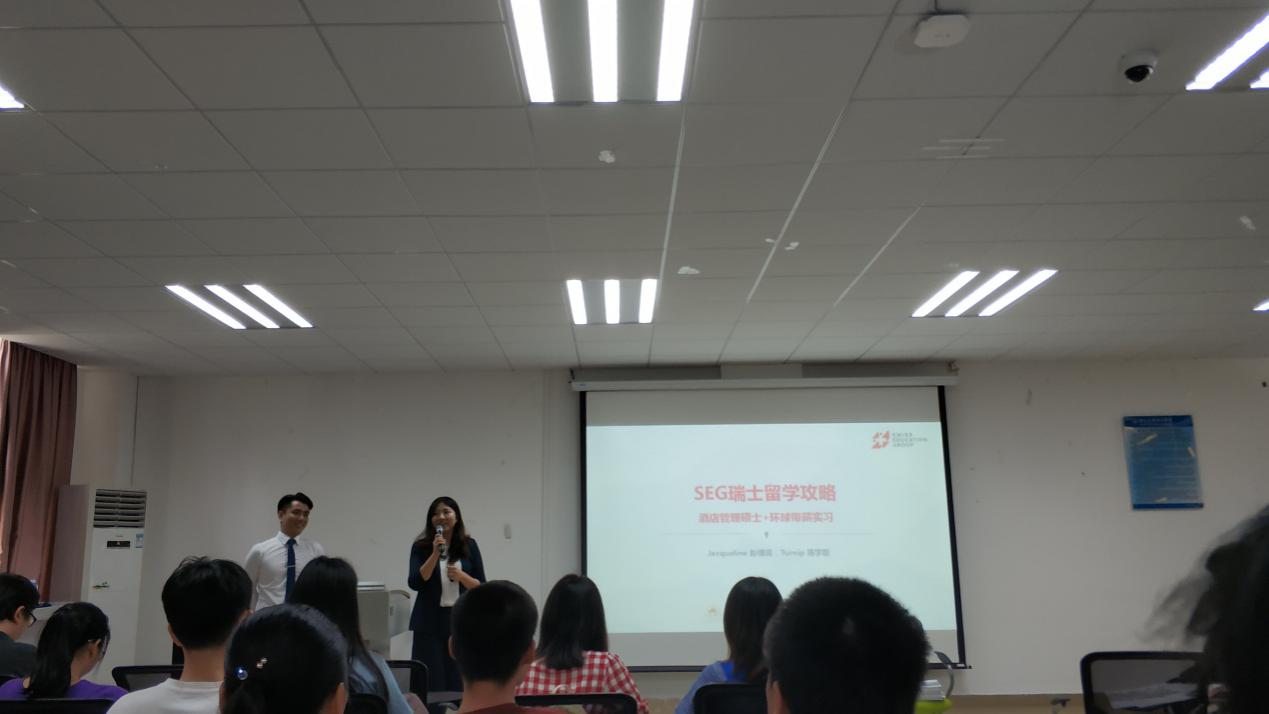 2019年6月19日下午十四时,SEG(瑞士酒店管理公司)宣讲会于9-101顺利开展。出席本次宣讲会的有SEG中国办事处入学事务助理彭倩菁老师、中山大学南方公司13届毕业生陈宇聪老师、太阳城娱乐国际教育中心萧裕中老师和石佳仪老师。其中,彭倩菁老师与陈宇聪老师担任宣讲会主持人。
