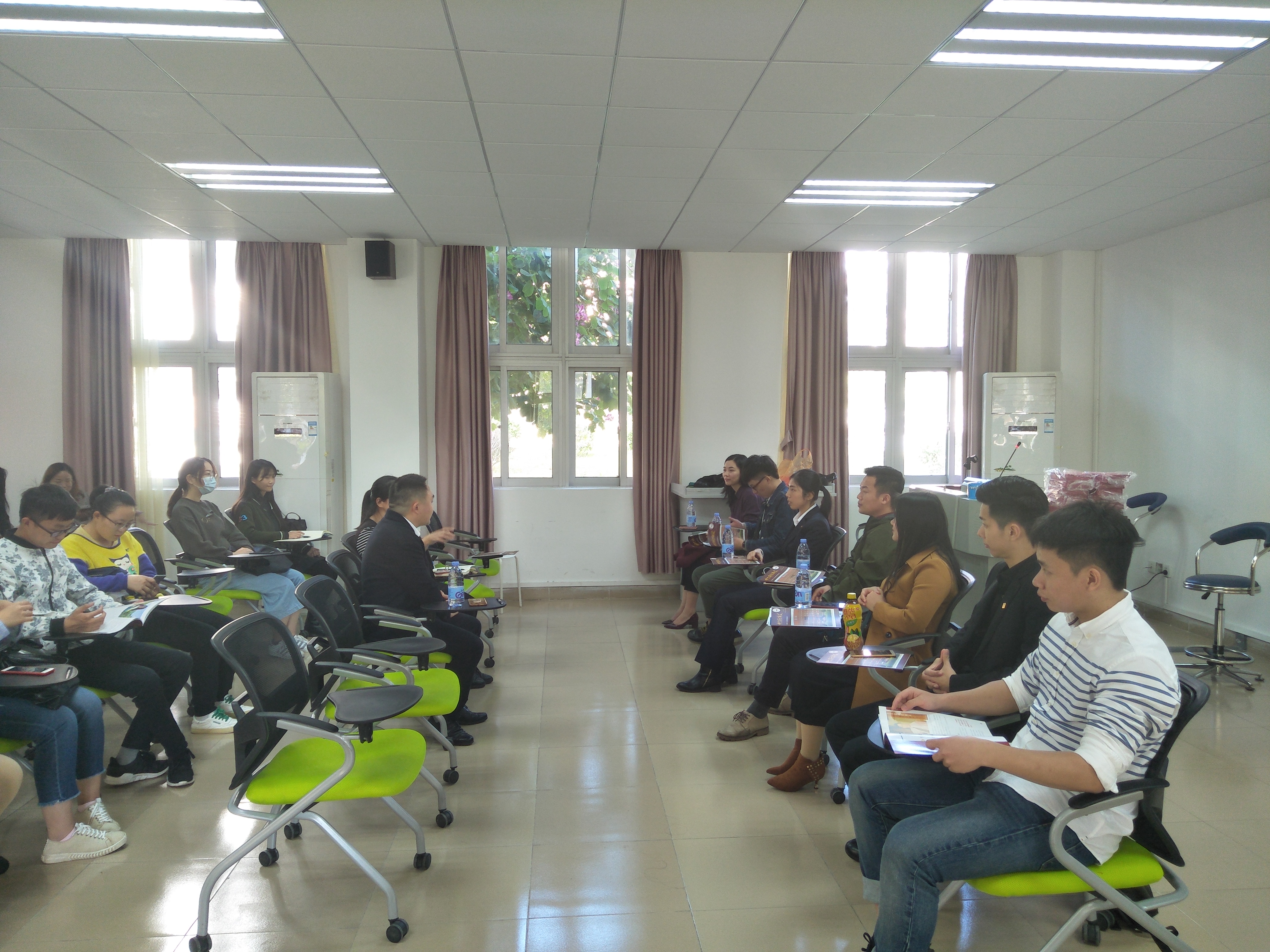 12月3日中午1点30分,太阳城娱乐员工交流会在9教101课室如期举办。本次交流会邀请了马文浩、张乃煜、邓卓坤、李琼芬、张鉴枫、叶晓晖、周晓惠、周钊基等8位员工,他们分别来自2010级、2011级、2012级,是参加当天的校园招聘会的企业代表。太阳城娱乐员工工作办公室主任李葡阳老师、辅导员陆正祥老师、杨小松老师以及20多名员工出席这次活动。
