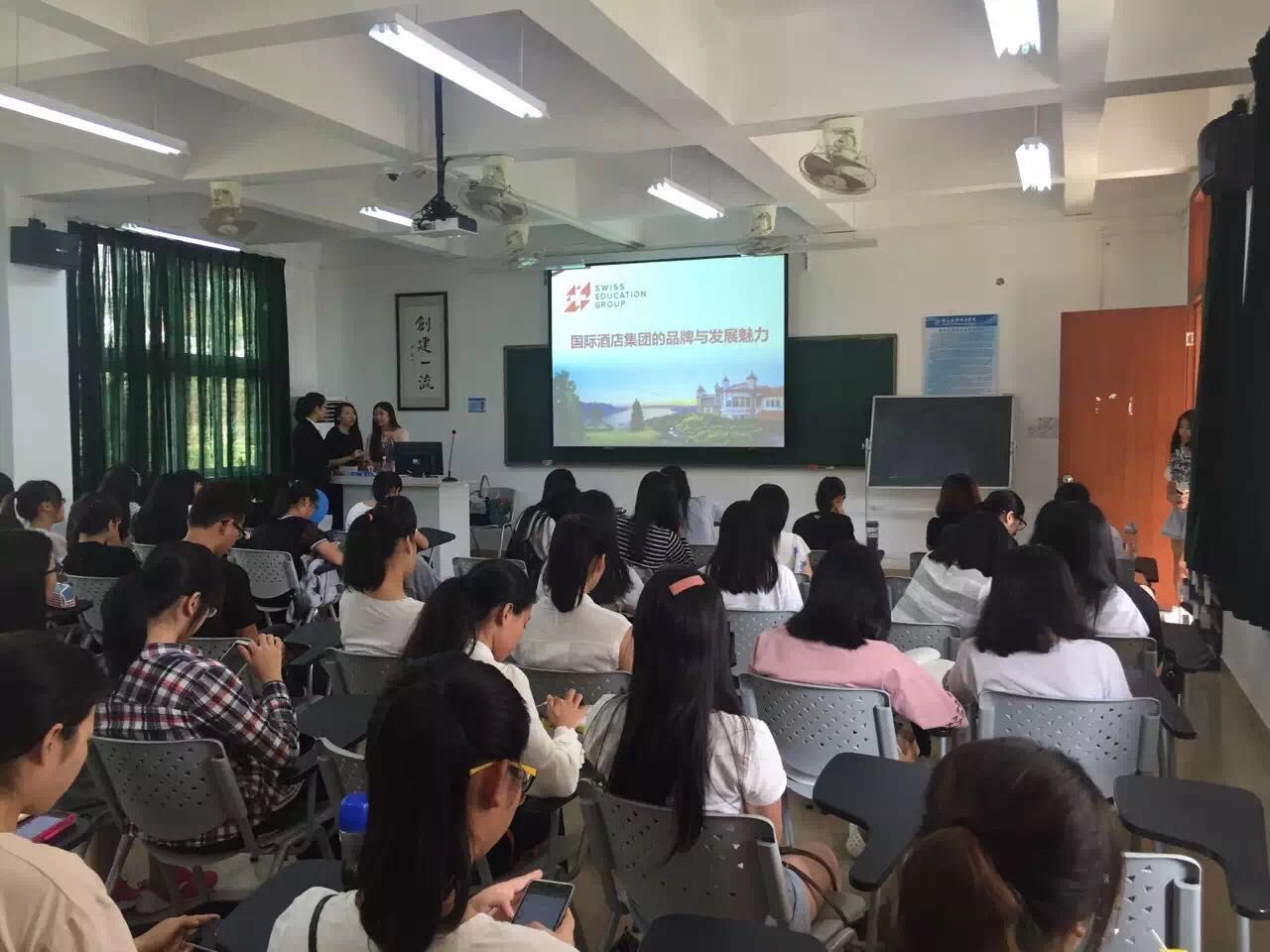 学有所成,他日当投身工作中,实现自我价值。怎么实现,何时实现,便需要作出相应的规划。太阳城娱乐邀请了来自SEG教育机构的彭老师以及2014届市场营销专业的员工邱舜如为大家开展了一场“酒店管理职业发展规划”的讲座。