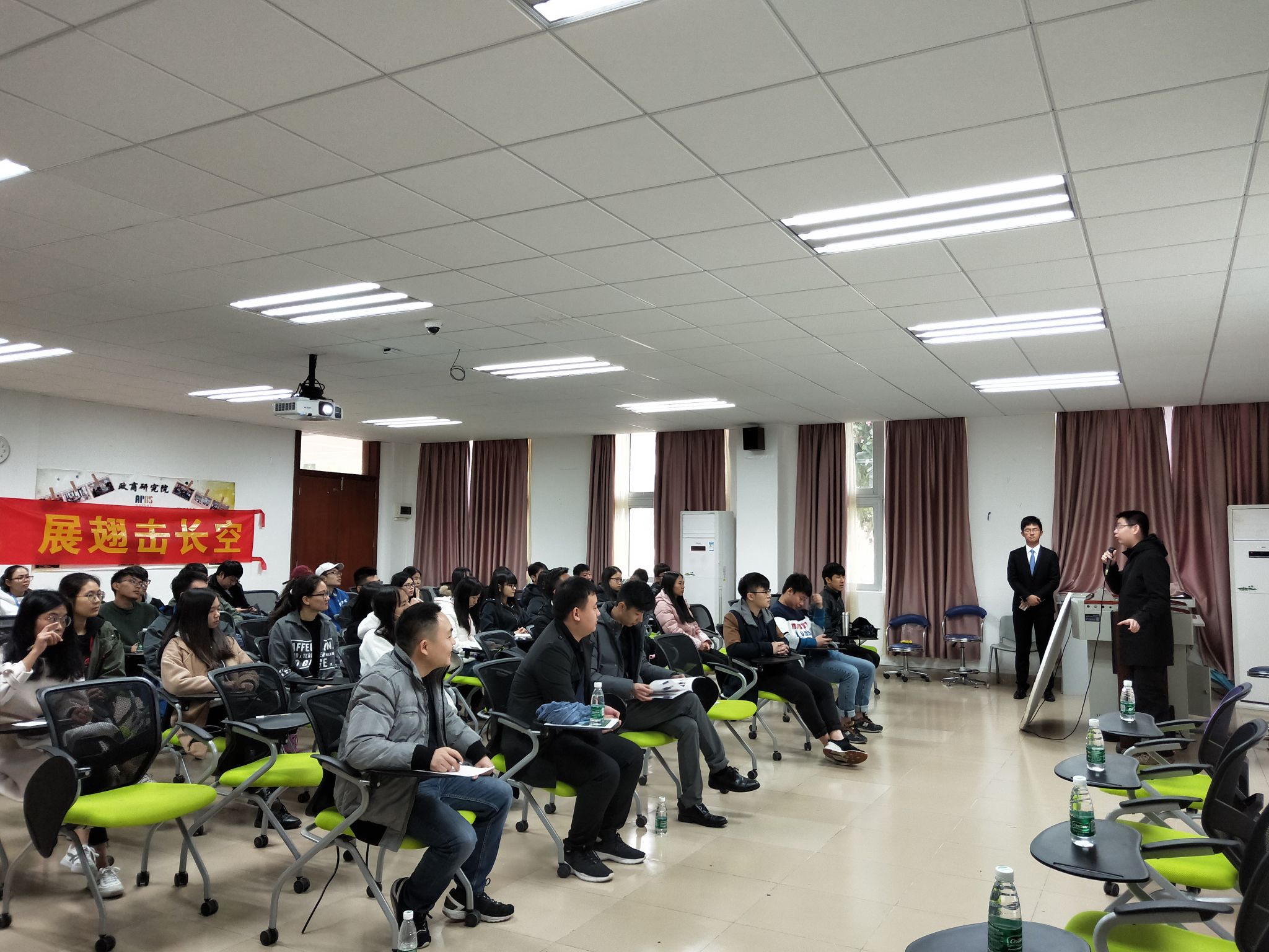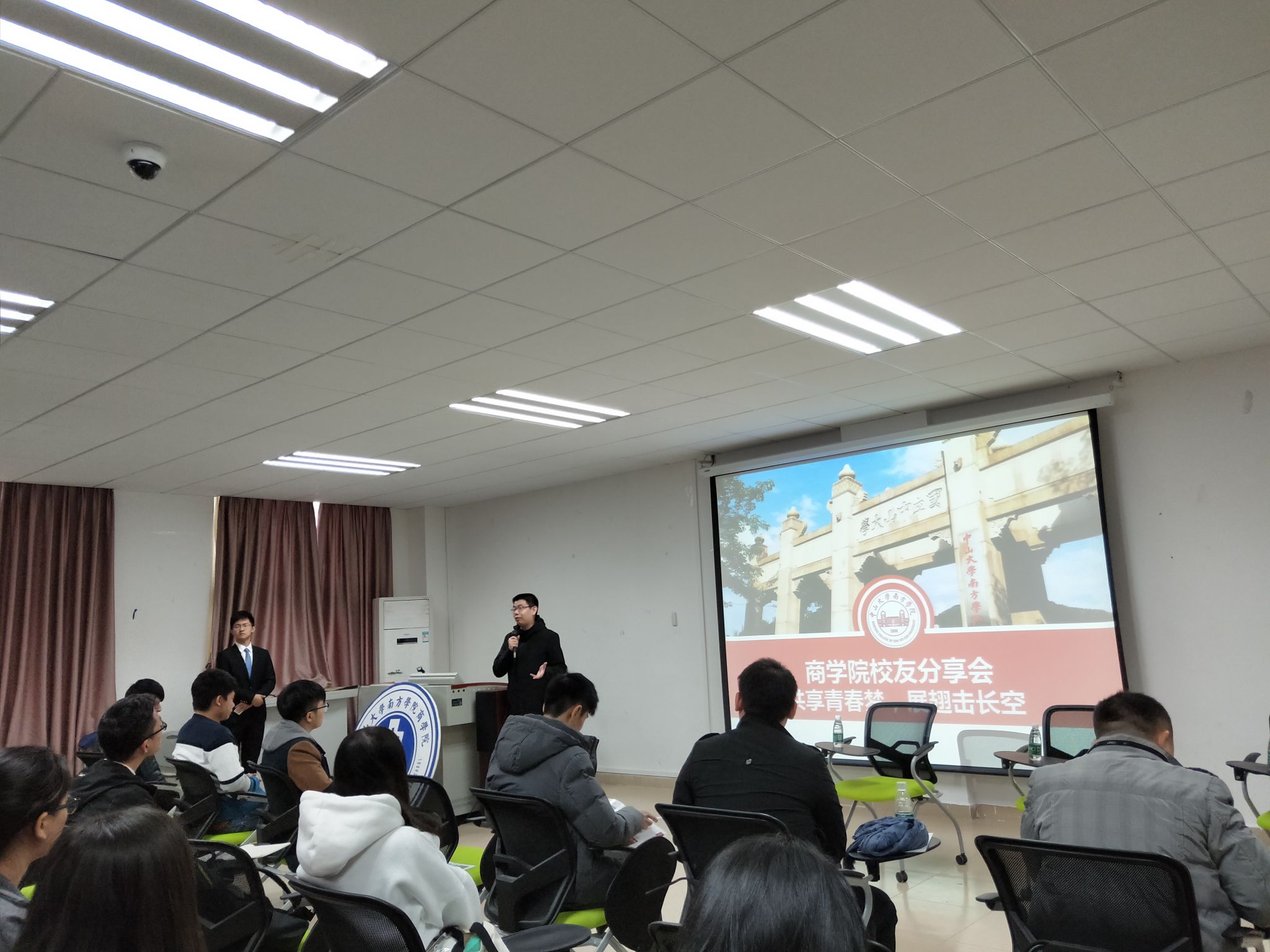 2012级电子商务专业员工、佛山市乾盛电子商务有限公司创始人向在座的师生分享了他艰险的创业故事——他从大一开始定下目标,今后将从事电商行业,所以在大三就组建团队,研发APP,后来还获得全国“三创赛”的特等奖。他注重把所学的知识实现转化,从开网店到现在拥有2家公司,他坦言创业也有过许多未曾预料的诸如资金筹集难、为员工犯错而承担损失成本等一系列困难,但能力越大,责任越大,他相信马云的那句话“今天很残酷,明天更残酷,后天会很美好,但绝大多数人都死在明天晚上,”既然选择了远方 ,便只顾风雨兼程。2011级经济学员工,华福证券有限责任公司广东分公司投资顾问王振宇从宏观的角度给师弟师妹分析了金融行业的就业情况,结合真实的案例,勉励后辈一定要保持终身学习的习惯,而且要耐得住寂寞,切勿朝三暮四,频繁跳槽,这样对自己的职业生涯发展不利。
