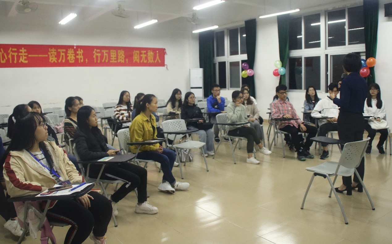 至此,杨颖芳学姐的分享基本结束。她将自身最真实的职业历程与心得作为讲话内容,将《穷爸爸富爸爸》中的赚钱模式提炼而出,并向同学们列举,让他们对平安保险行业有了初步了解的同时,也让他们对今后就业方向的选择及职业规划拥有一定把握。