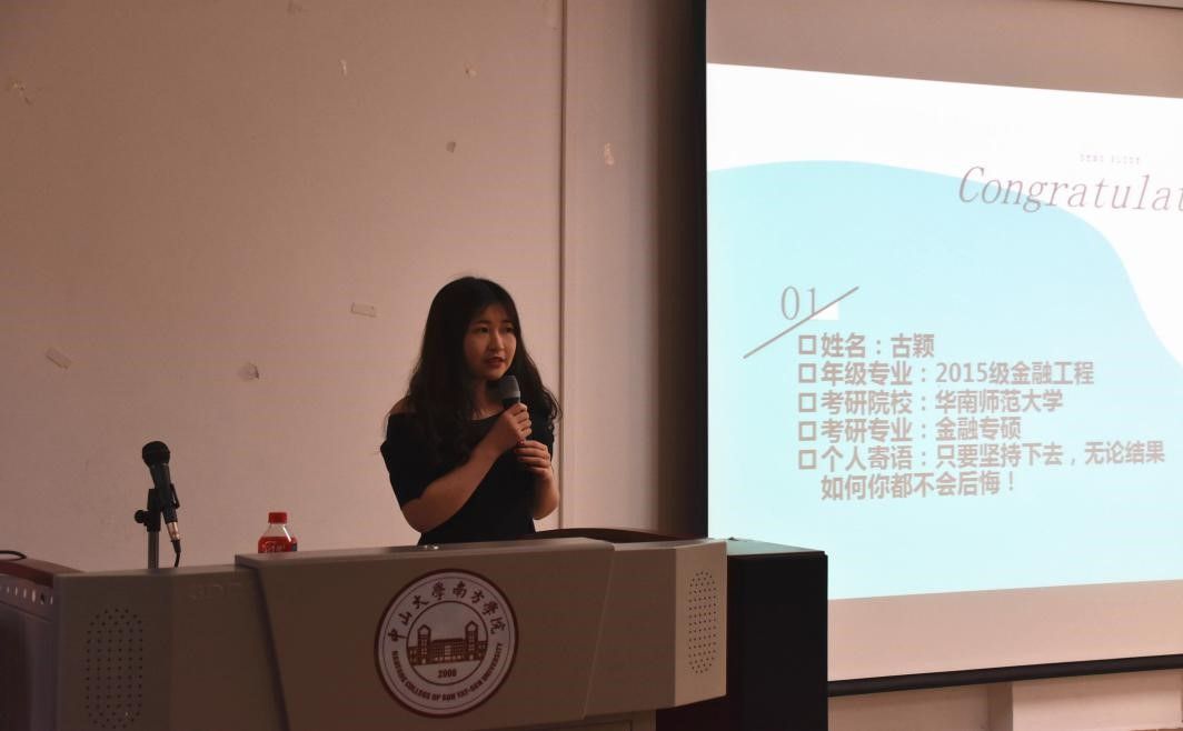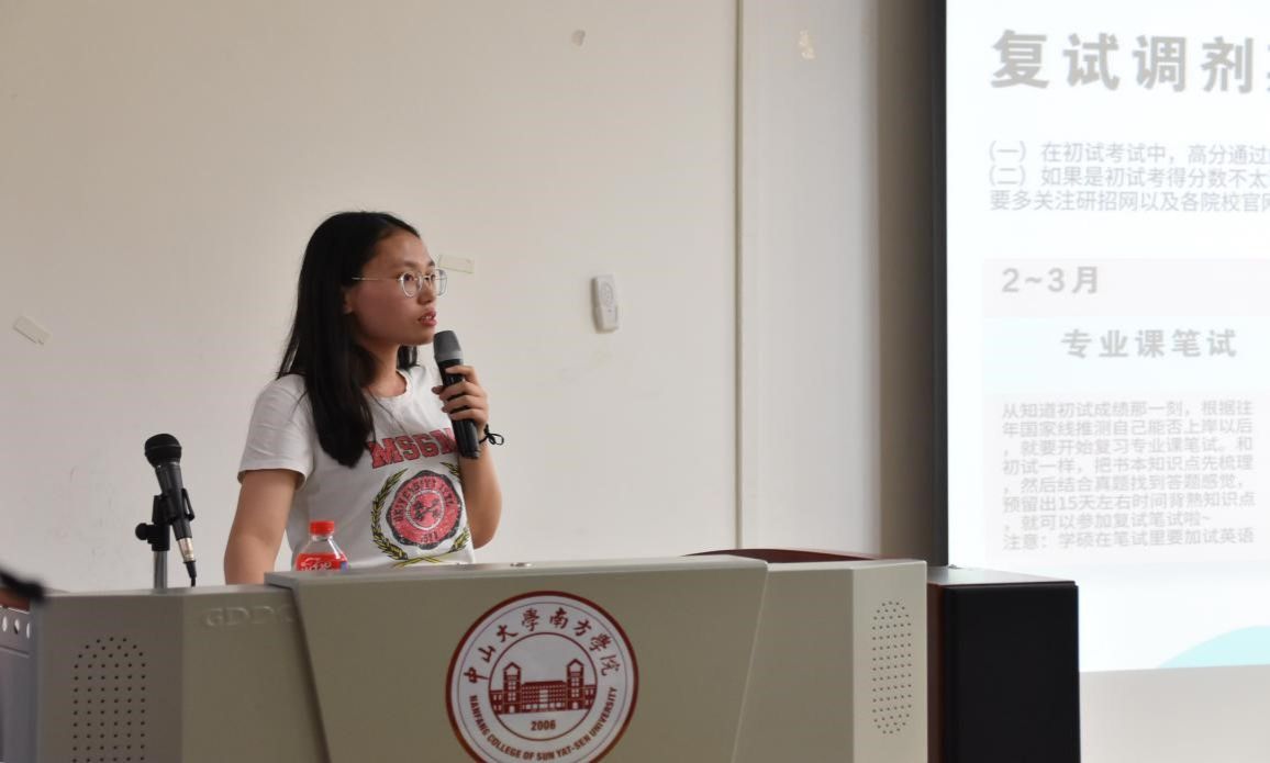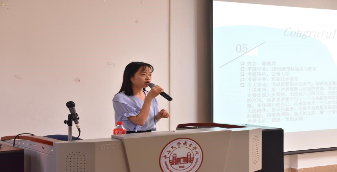 吴淑华现被华南农业大学的植物学专业录取。分享会中她除了分享如何获取有效的复习资料,更勉励各位准备考研的同学,考研是一次给自己重新选择专业的机会,她之所以跨专业考研,是因为对那个专业有着浓厚的兴趣,兴趣是最好的导师。此外,考研是一次对自己的挑战,既然选定了这条路,就要要拼尽全力去圆梦。
