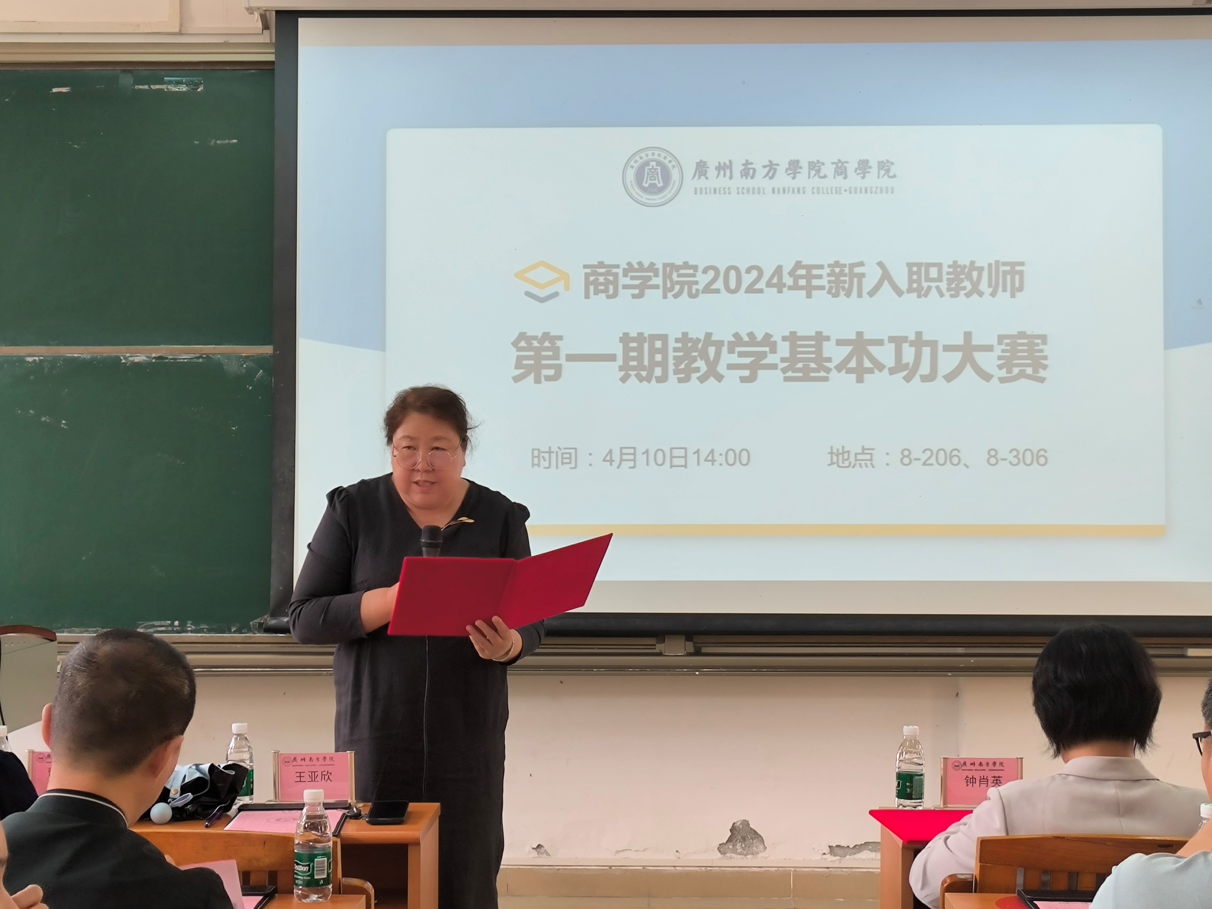 大赛伊始,钟肖英教授致辞。钟处长强调:“师者,传道授业解惑也”,作为老师,首先要站稳讲台。教学基本功是一名老师安身立命的根本,只有练好教学基本功、站稳讲台,才是一名称职的老师。钟处长希望新进教师能以本次基本功大赛为契机,进一步深入切磋教学技能,不断交流教学经验,提升自己的教学能力、快速成长,成为一名受员工欢迎的好老师。