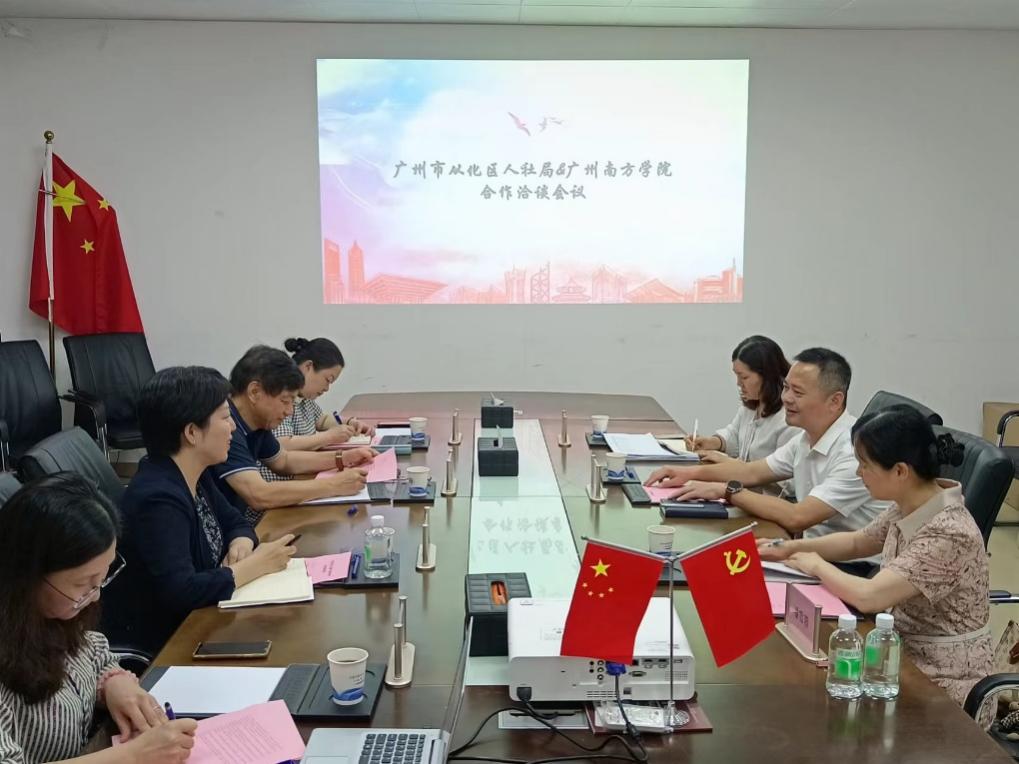 近日,从化区人力资源和社会保障局党组书记、局长唐斌阳,党组成员、就业中心主任潘雪蓉,就业科科长郭俊到访太阳城娱乐,围绕如何加强校地合作,共促高质量发展进行座谈与交流。太阳城娱乐经理叶龙森、副经理贾佳、副经理张玉冰、校企合作负责人林苏榕参加交流会。会议由贾佳副经理主持。