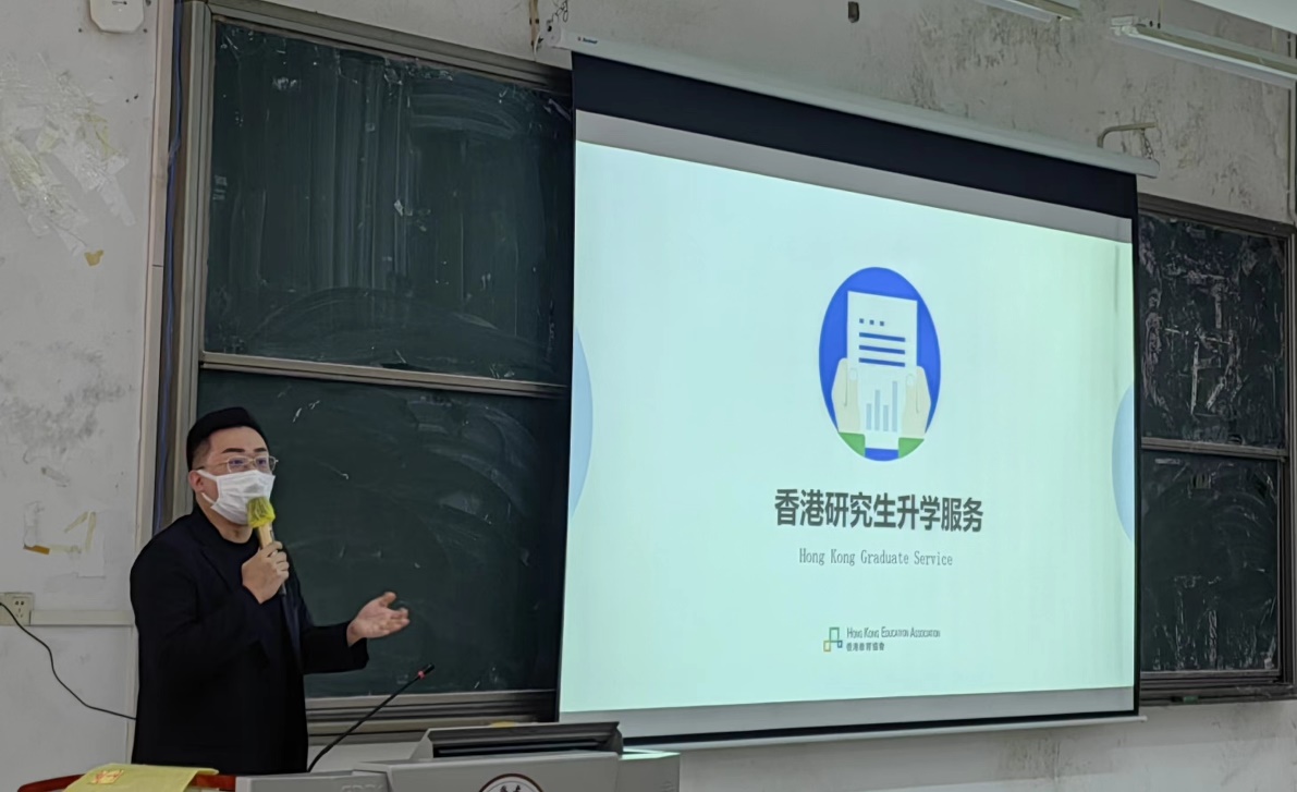 香港教育协会中国内地招生主任杨守冬老师介绍了香港教育协会的主要合作机构与工作内容,其中包括协会开办的人才交流活动、本地社会体验项目、全民学习活动等。杨守冬老师提出,近年来赴港留学的人数与2020年同比增长了6.8%,考研人数急剧增加,竞争愈发激烈。