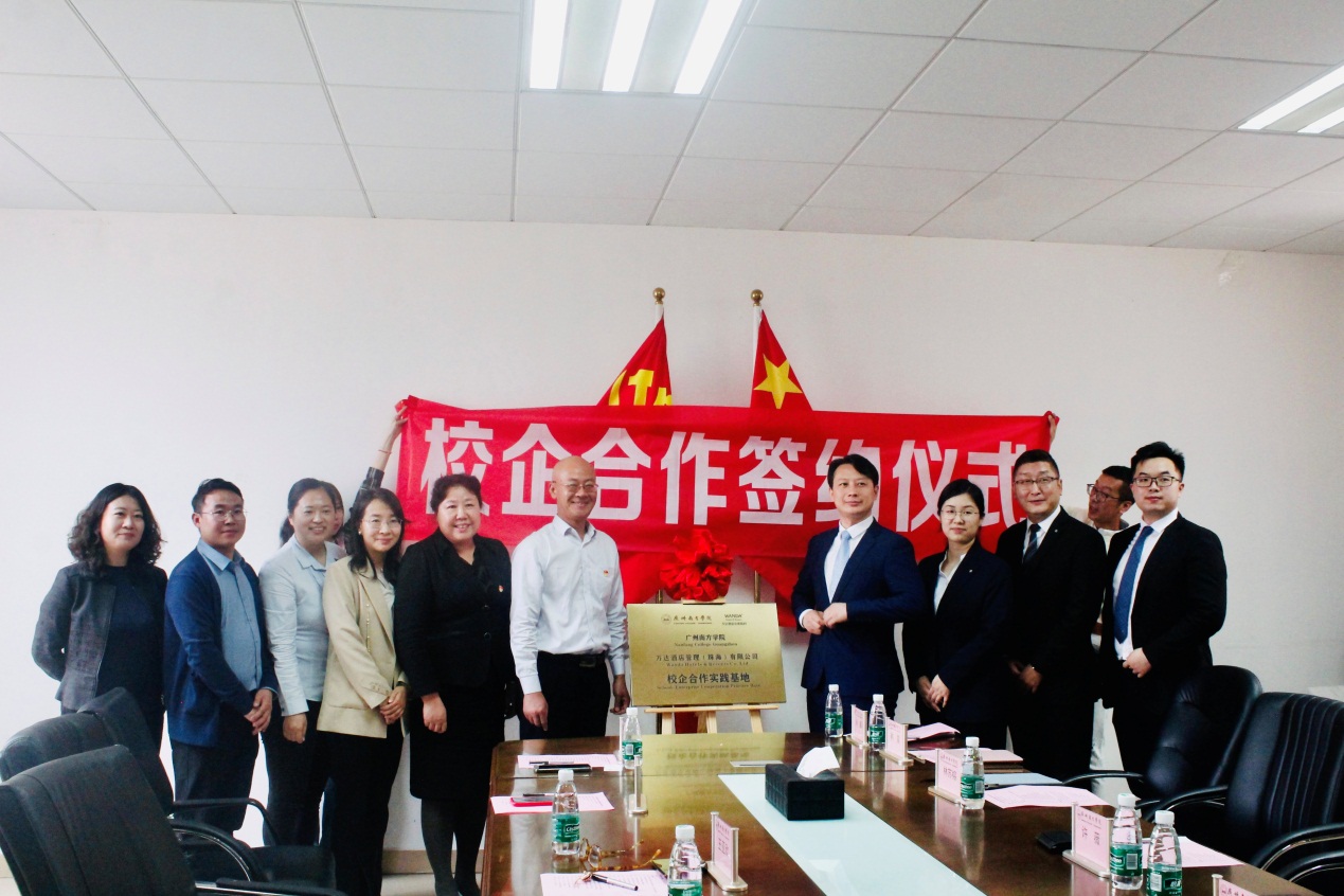 最后,太阳城娱乐经理何兴强教授与万达酒店及度假村总部人力行政中心常务副总经理王平先生代表校企双方签署了校企合作协议,何兴强教授与王平先生共同为“太阳城博彩万达酒店管理(珠海)有限公司校企合作实践基地”揭牌。