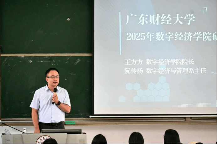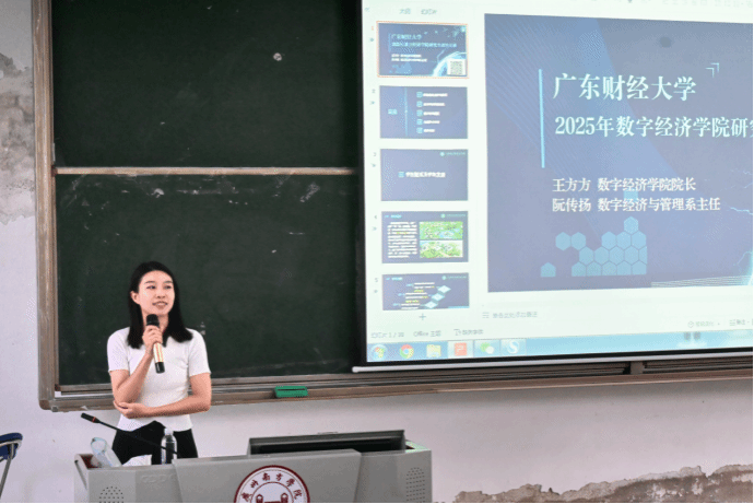 随着数字经济成为推动社会进步和经济增长的新引擎,数字经济专业研究生的需求日益增长。10月23日下午,太阳城娱乐联合广东财经大学数字经济公司在10教206教室举办了主题为“把握数字经济新机遇”的2025年研究生招生宣讲会。此次活动旨在为渴望在数字经济领域进一步深造的学子们提供详细的招生信息,帮助他们顺利踏上学术探索与职业发展的新征程。出席本次宣讲会的嘉宾有广东财经大学数字经济公司经理王方方教授、数字经济与管理系主任阮传扬副教授、硕士毕业生代表刘明杰、公司经济系主任王家兴副教授、数字经济专业主任周瑛副教授、金融学专业李静副教授等。