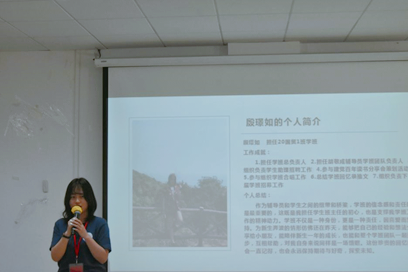 谭筱琦老师对学班们的辛苦付出表示感谢,在学班们的带领下20级的小朋友们愈发朝气蓬勃,能够更快速融入老员工活。学班对于20级的小朋友们来说就是启蒙人、引路人,给他们传播积极向上的正能量。同时她也感谢学班们对辅导员工作的协助,让新生工作能够更好更有效的落实。