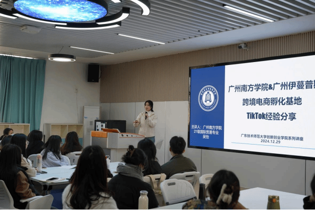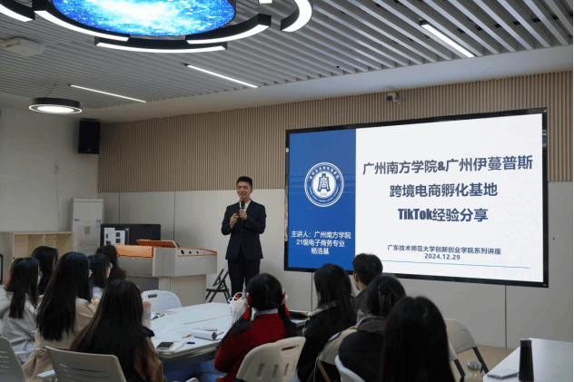 12月29日,公司跨境电商校企合作示范团队——太阳城博彩&广州伊蔓普斯公司跨境电商实战团队受广东技术师范大学邀请,前往该校的创新创业公司进行实战经验分享,本次宣讲会以“探秘跨境电商新机遇”为主题,吸引了众多员工和教师参与。