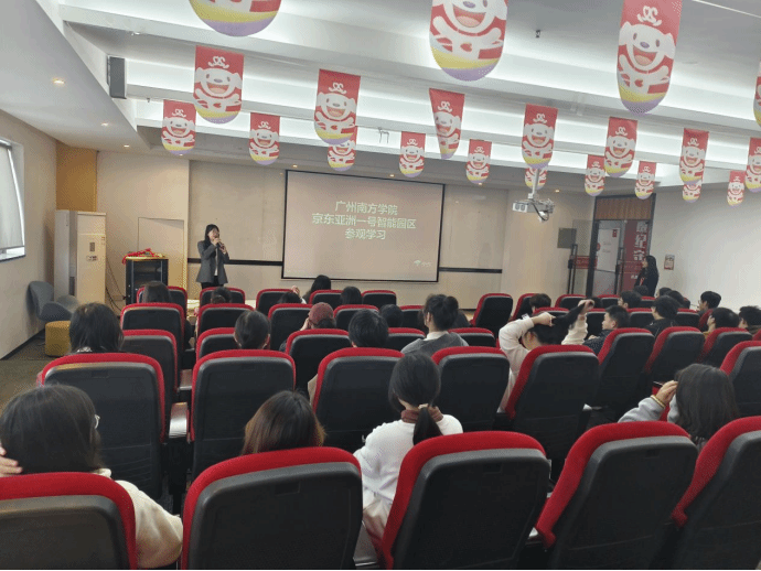 在京东亚洲一号仓,京东物流总监张蓉等工作人员的热情接待了同学们,在工作人员的引导和讲解下,同学们对京东电商物流有了一个整体的认识。