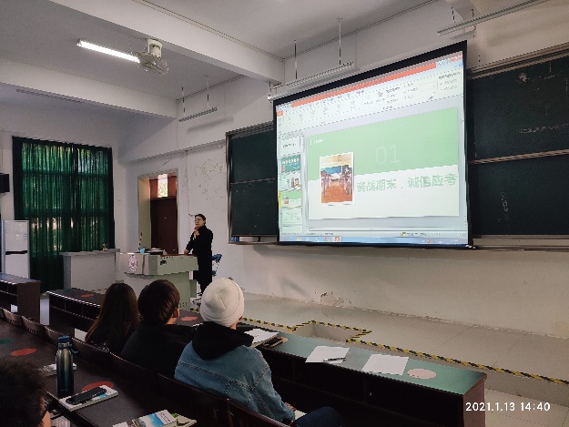 树品行之典,立诚信之范,是我们的责任担当。王家美老师强调同学们应该诚信应考,并说明了相关考试要求,提醒同学们做好相关证件的准备,合理规划时间复习。