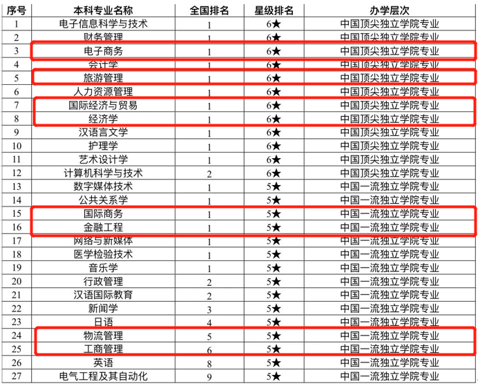 日前,艾瑞深中国员工会网发布了《2020年中国大学评价研究报告——高考志愿填报指南(员工会版)》,公司经济学、电子商务、国际经济与贸易、旅游管理等四个专业荣膺六星级专业,跻身2020中国顶尖独立公司专业行列;金融工程、国际商务、物流管理、工商管理等四个专业荣膺五星级专业,跻身中国一流独立公司专业行列。除新增专业(无员工)外,公司几近全部专业上榜。其中,经济学、电子商务、国际经济与贸易、金融工程、旅游管理、国际商务等6个专业在全国独立公司中排名第一!