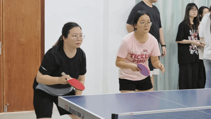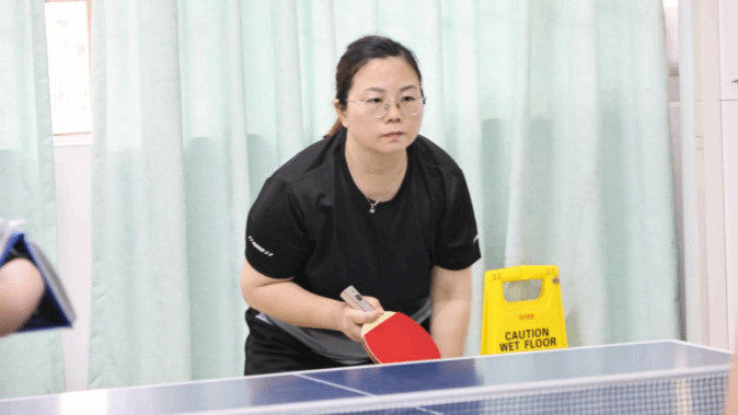 经过初赛阶段全校 8 支队伍的激烈角逐,公司教职工代表队凭借出色的实力与默契的配合,成功跻身决赛四强。在球台上,他们不再是平日里那个治学严谨、和蔼可亲的师者,而是化身为意气风发、斗志昂扬的运动员,用汗水与激情诠释着对乒乓球运动的热爱与执着。