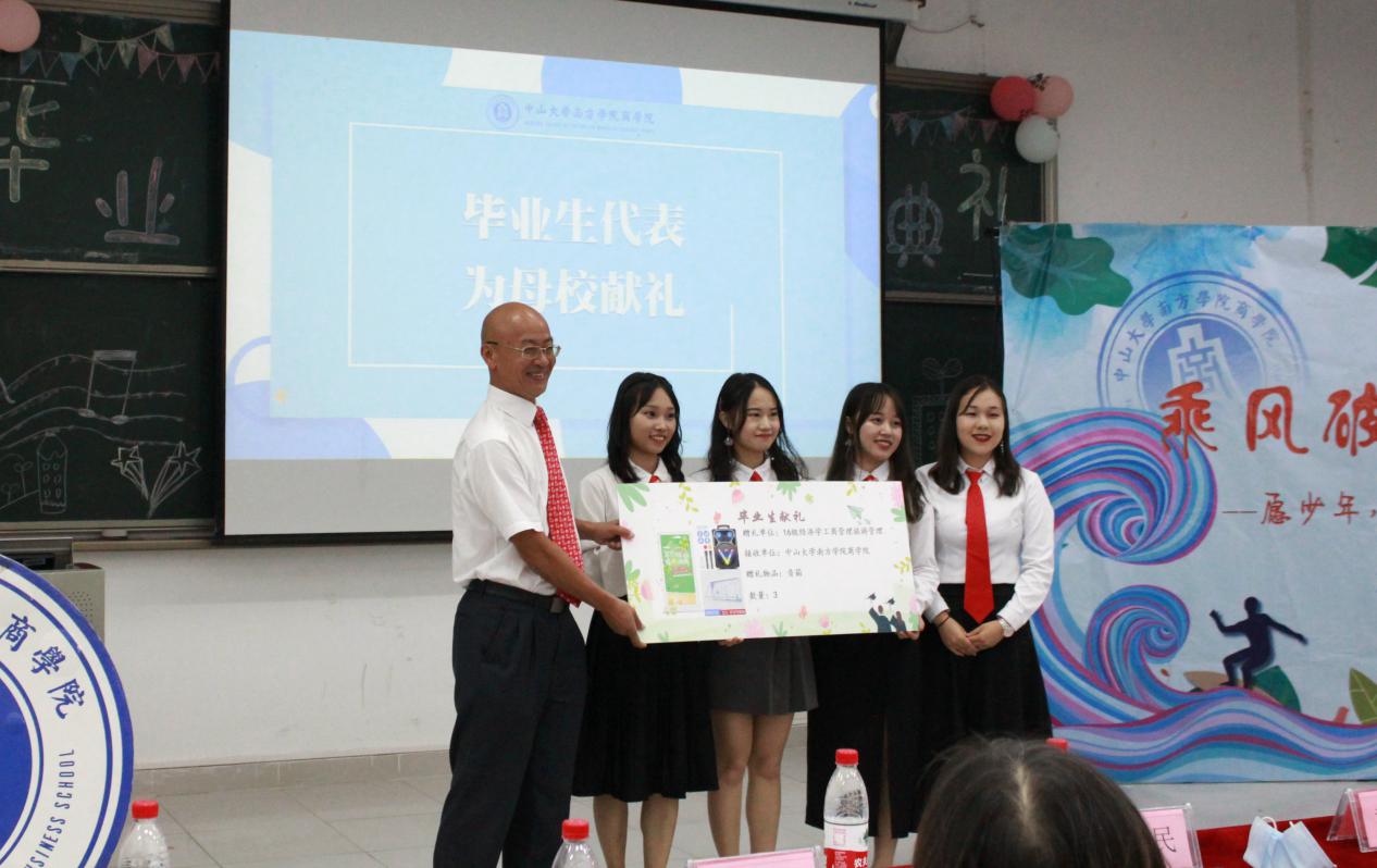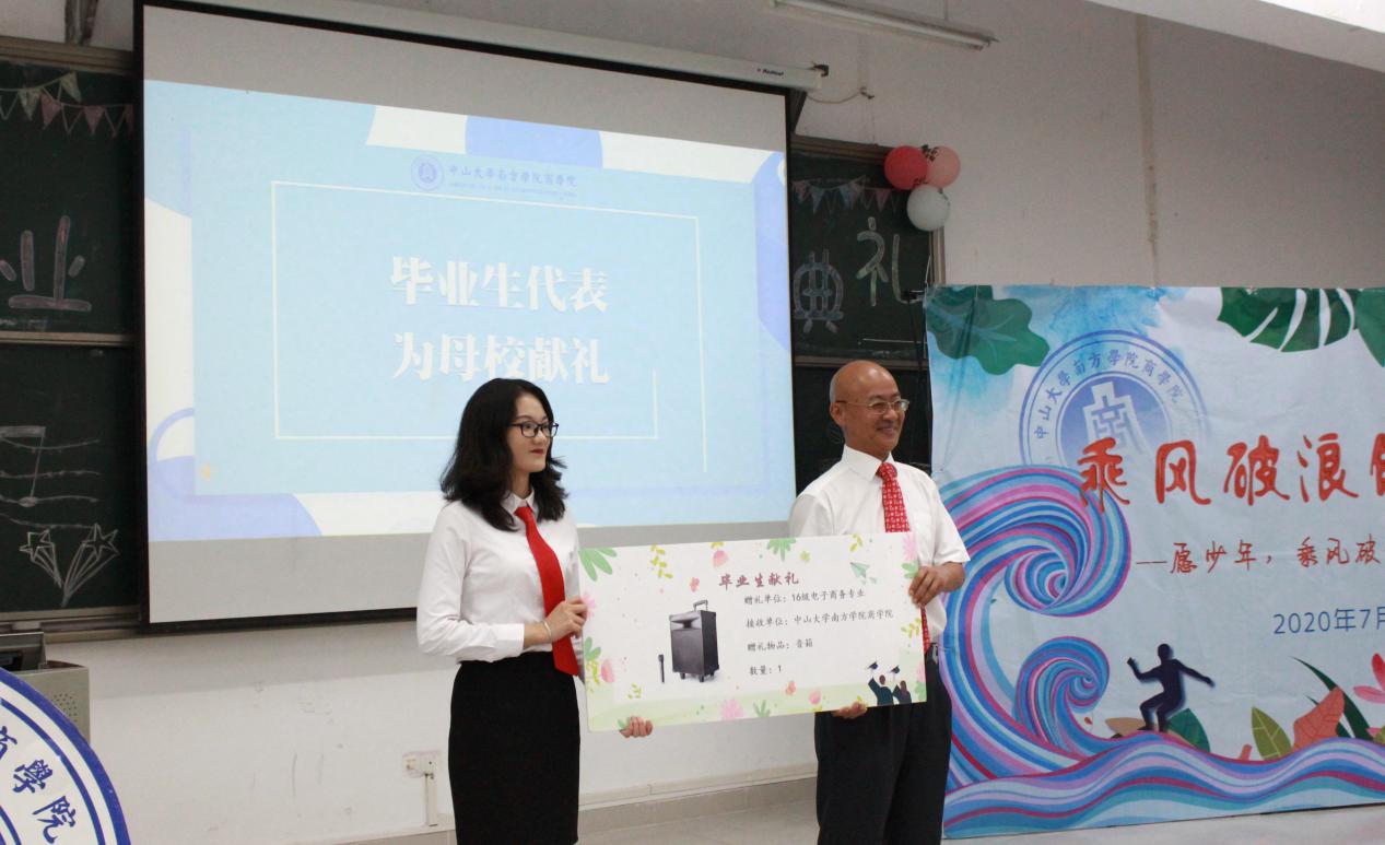 毕业生代表为母校献礼。