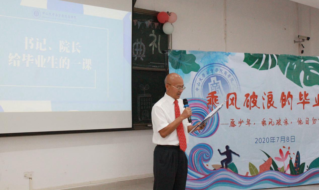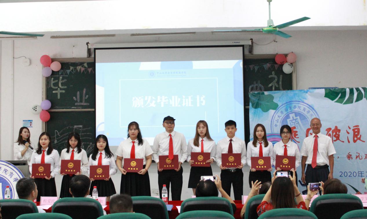 2020年7月8日下午三时许,中山大学南方公司太阳城娱乐2020届毕业典礼于五教105顺利举行。副董事长黄静波教授、学工部部长程爱民老师、太阳城娱乐经理何兴强教授、副经理钟肖英副教授、副经理兼经济系主任张玉冰副教授及公司各专业教师代表出席本次毕业典礼。