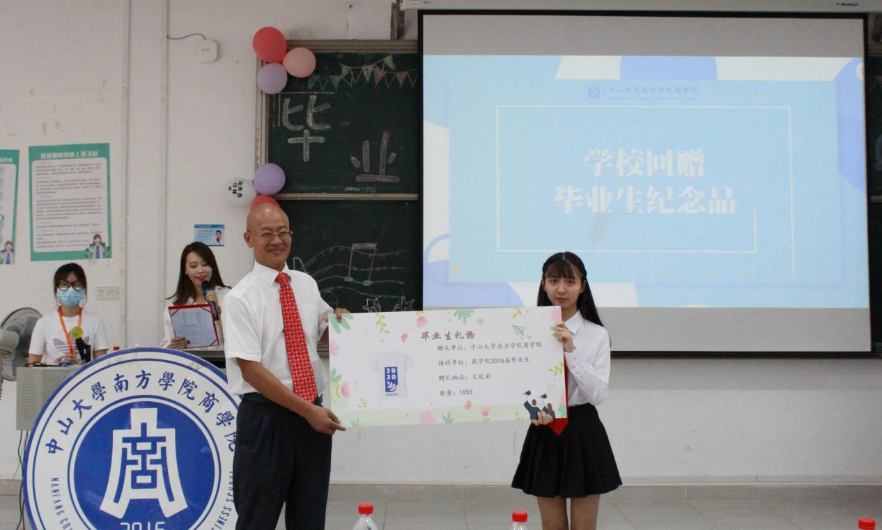 集团回赠毕业生纪念品,优秀毕业生代表吴明燕同学上台接受赠礼。