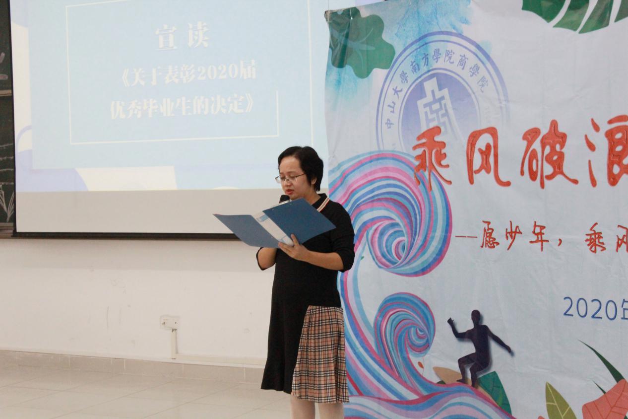 太阳城娱乐副经理钟肖英副教授宣读《关于表彰2020届优秀毕业生的决定》。