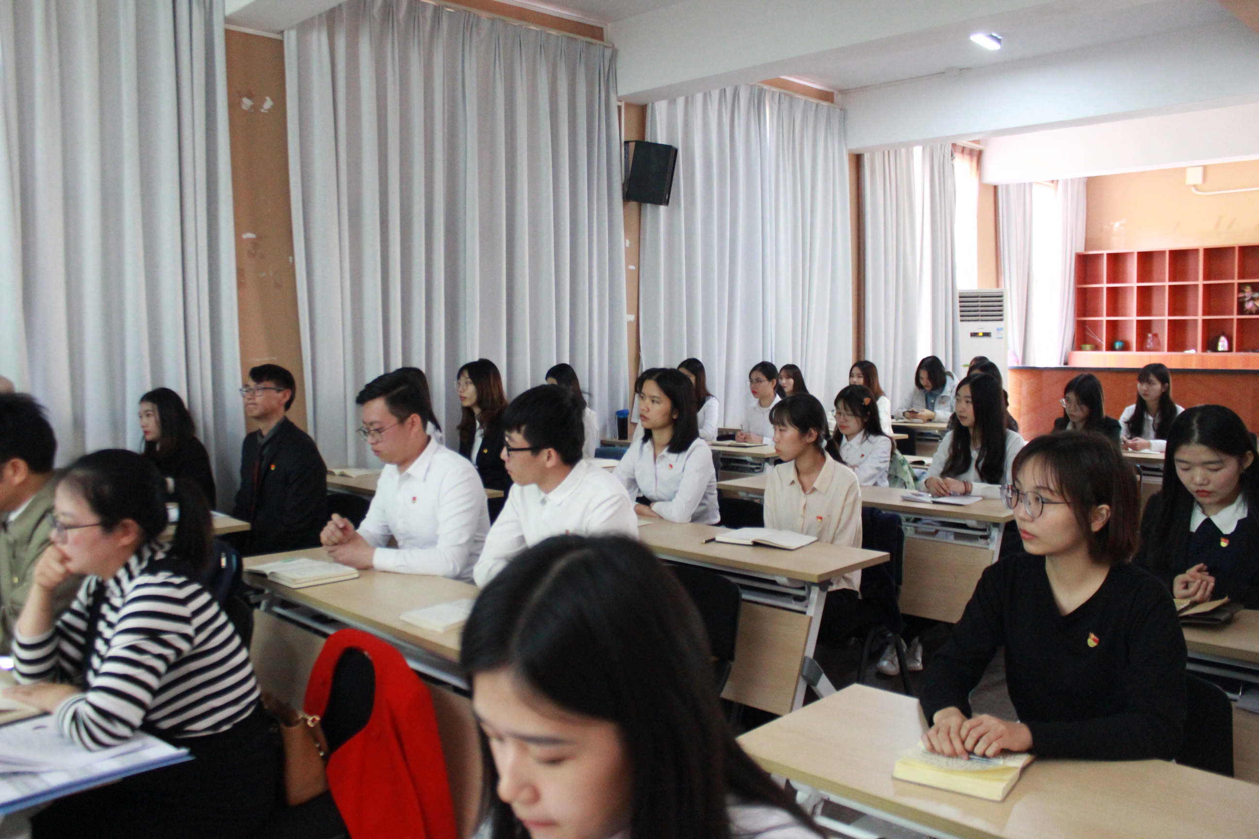会议伊始,支部书记韩露老师带领全体党员学习《中国共产党章程》第三条中对党员义务的明确阐述;回顾习近平总书记出席庆祝中华人民共和国成立70周年系列活动时的重要讲话;传达十九届四中全会的相关会议精神并着重讲解了其中的六项创新点。在党员标准明确与时政学习的过程中,韩露书记要求全体党员要坚定不移地把党章作为自己的行动纲领,在习近平总书记的系列讲话精神的指引下阔步前行,以实际举措确保十九届四中全会精神贯彻落实。
