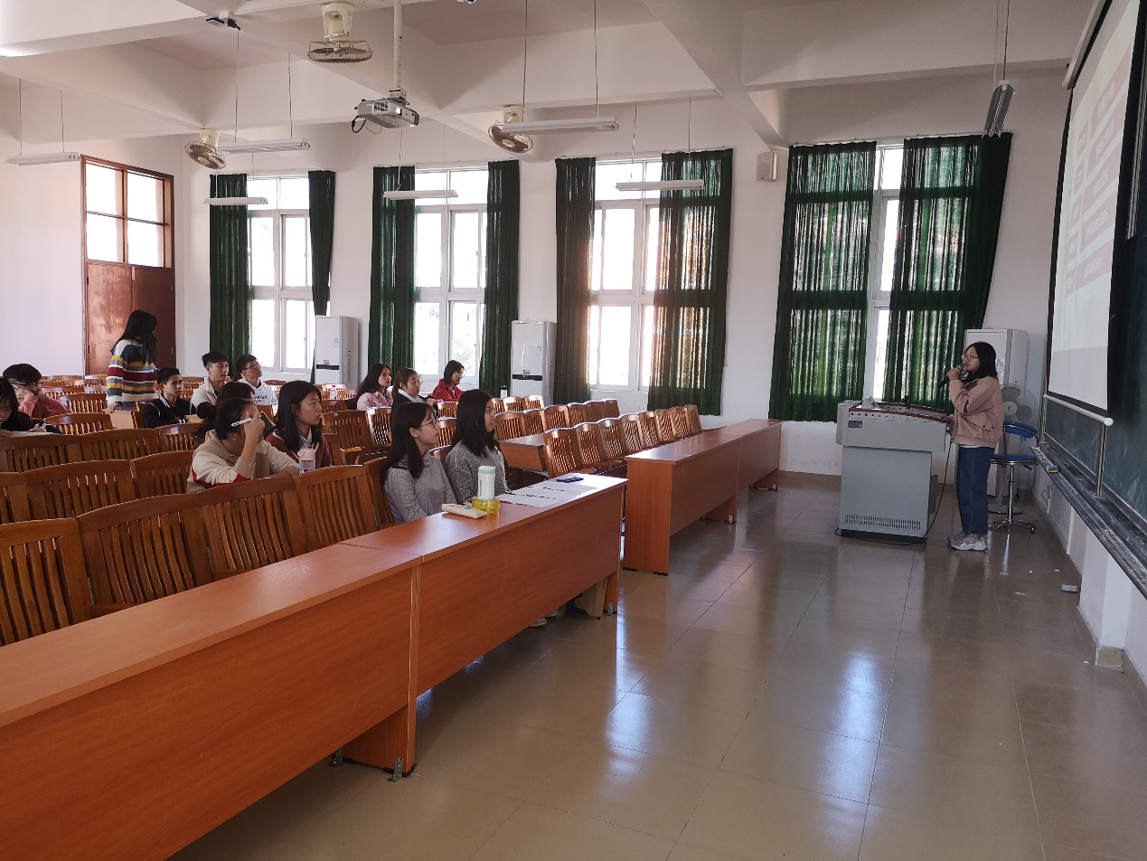 首先,针对2019年10月28日至31日在北京召开的“中国共产党第十九届中央委员会第四次全体会议”,主讲人邬佩莹同志展开了详细的会议剖析。她指出,本次会议发布九个提法值得关注,她就其中几个提法展开了详细的讨论,分别是:一、国家治理效能。该提法最重要就是把我国制度优势更好转化为国家治理效能;二、建立不忘初心、牢记使命的制度。邬佩莹同志表示,我们二支部很好地结合支部特色将“不忘初心、牢记使命”制度融入贯彻到了支部生活中;四、构建服务全民终身学习的教育体系。满足人民多层次多样化需求,使改革发展成果更多更公平惠及全体人民。邬佩莹同志将十九届四中全会的精神完整普及给每一位积极分子,做到持续推动青年理论武装工作走深走实,使积极分子们更加自觉地增强“四个意识”、坚定“四个自信”、做到“两个维护”。
