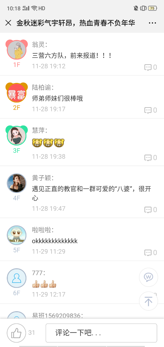 寒冷的天气没有浇灭同学们班级内部的热情,这次班级之间的易班评比,不仅可以充分发挥易班网络育人平台功能,让更多的同学进行有效地交流和学习,而且可以增强班级的凝聚力和班级协作精神,展示出良好的学风、班风,逐步构建刻苦学习、努力锻炼、互相关心、求实向上的班集体。?