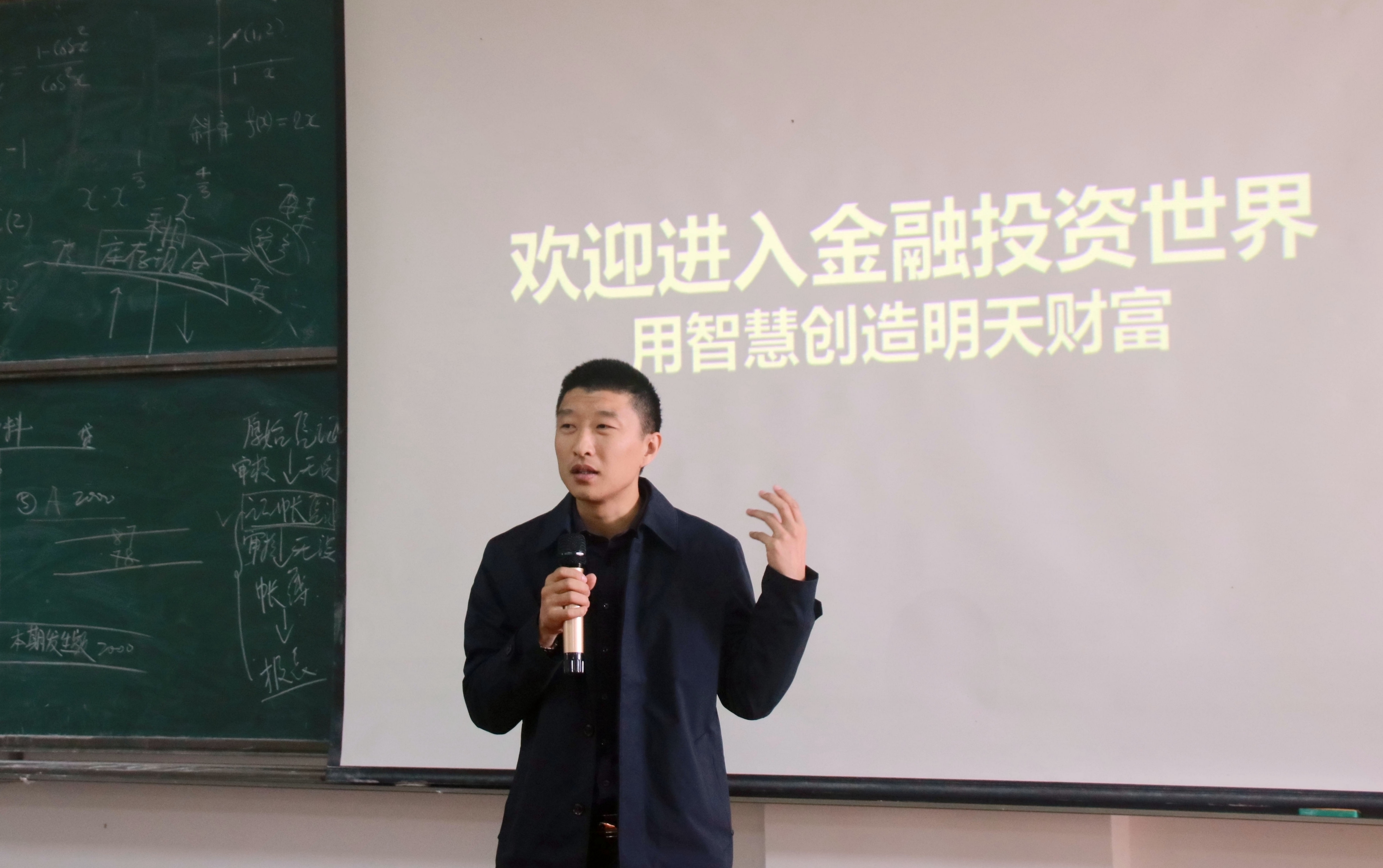 创智资本的交易总监刘启鹏先生则为同学们简介了创智公司校企合作的初心,希望通过企业和高校的合作培养应用型人才。接下来,他深度分析了为什么选择做交易员,做“T+0”日内交易员主要的工作是什么,并强调了交易员必备的素质和能力,对比了人工智能量化交易和人员量化交易的利弊,最后,刘启鹏先生还给同学们介绍了校企合作交易员的课程大纲。创智公司的负责人王鹏先生则针对“T+0”融券的基本流程做了进一步的补充。