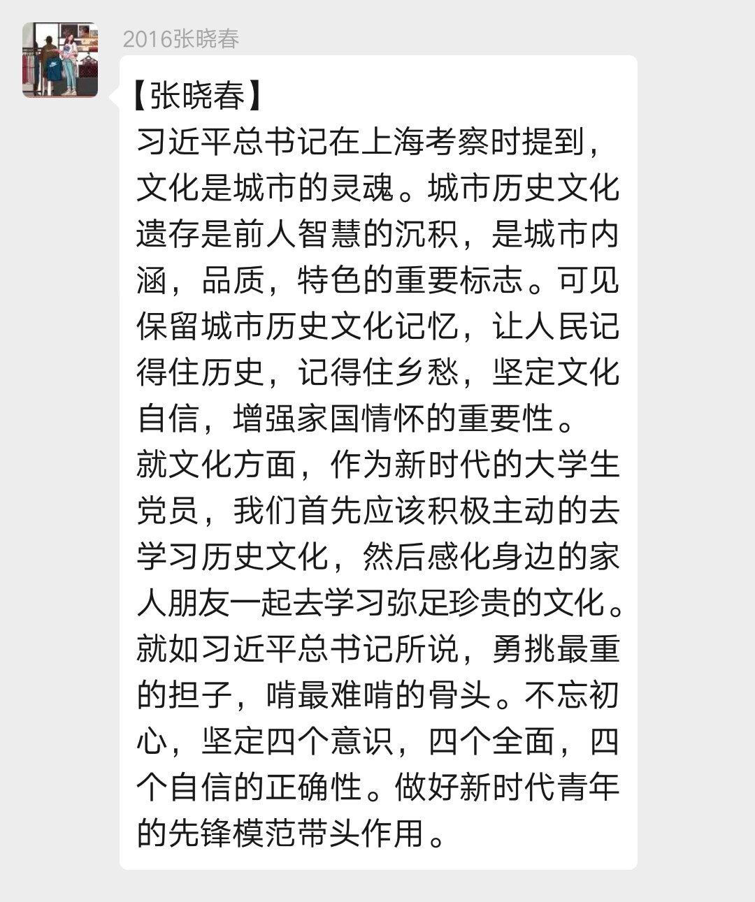 就文化方面,作为新时代的老员工党员,我们首先应该积极主动的去学习历史文化,然后感化身边的家人朋友一起去学习弥足珍贵的文化。就如习近平总书记所说,勇挑最重的担子,啃最难啃的骨头。不忘初心,坚定四个意识,四个全面,四个自信的正确性。做好新时代青年的先锋模范带头作用。