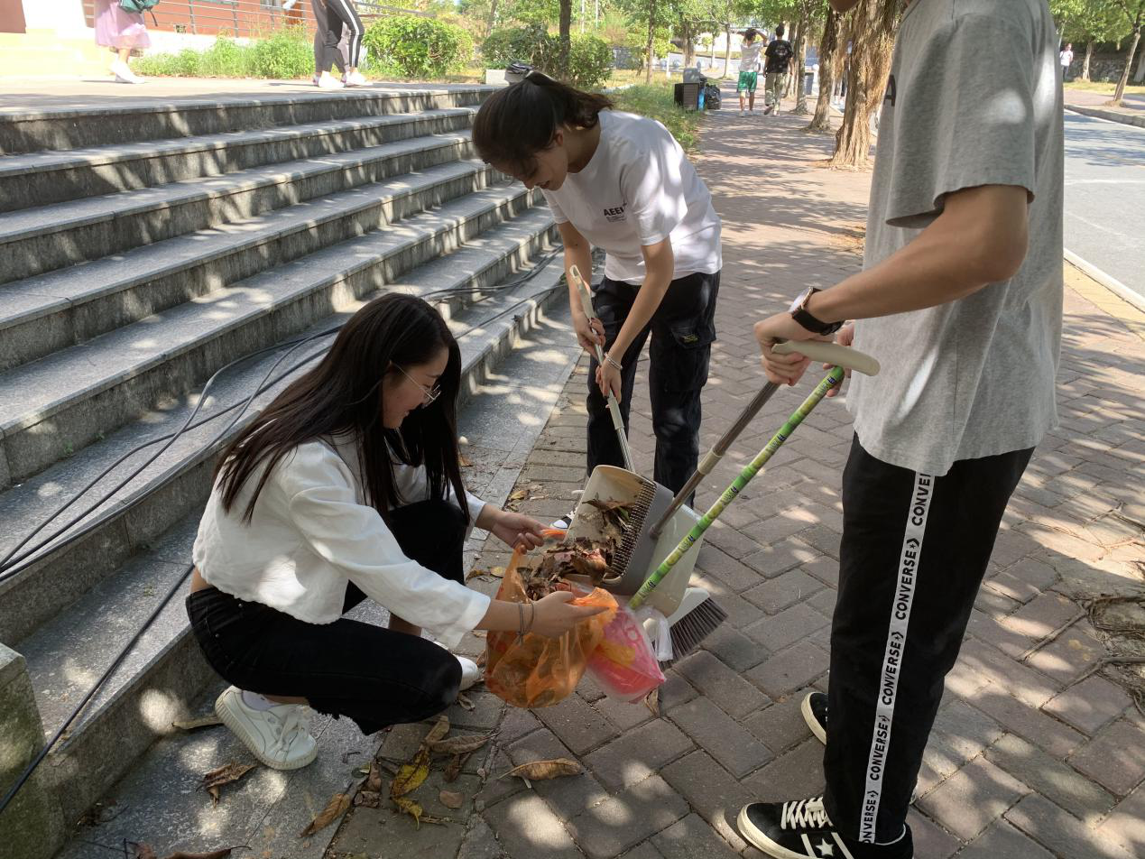 2019年11月16日下午,志愿服务小组17人对八教到九教的路段进行了垃圾清理。活动开始前,组长将大家分成两批,一批处理九教长廊的垃圾,一批清扫八教和九教之间的落叶。在活动过程中,小组成员积极参与,每个人都在全心全意做事,沉浸在服务校园的工作中。