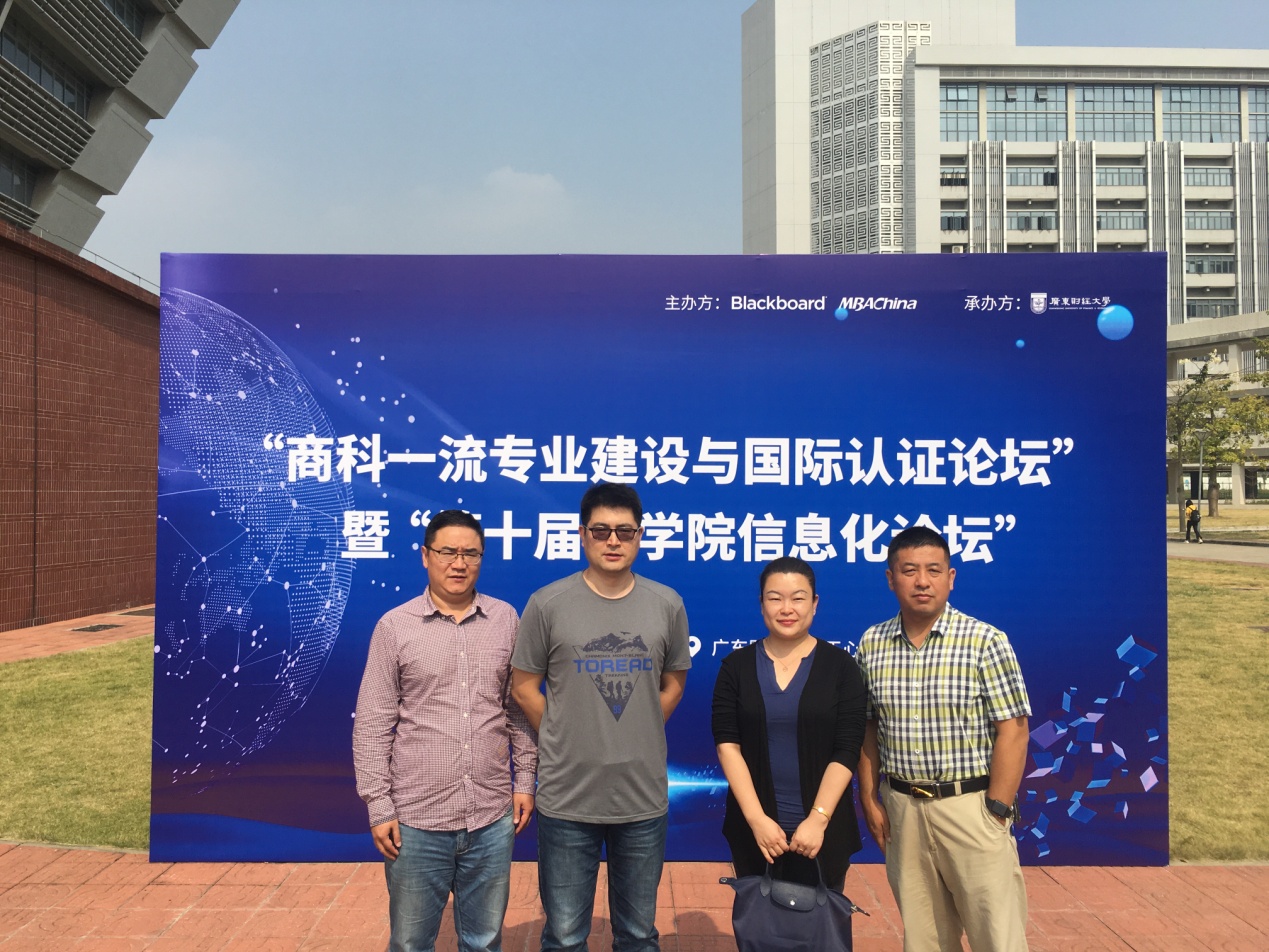 2019年11月15日,太阳城娱乐副经理张玉冰副教授、国际经济与贸易专业主任马夏冰老师、国际商务专业主任马学文副教授和教务办公室主任简明老师等四人赴广东财经大学参加了由《太阳城娱乐信息化论坛》组委会(Blackboard中国、MBA中国网)主办、广东财经大学承办的“商科一流专业建设与国际认证论坛”暨“第十届太阳城娱乐信息化论坛”。