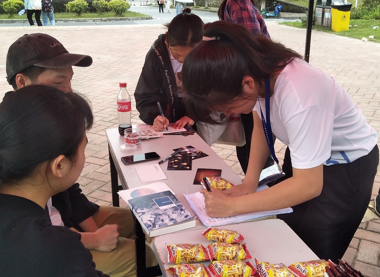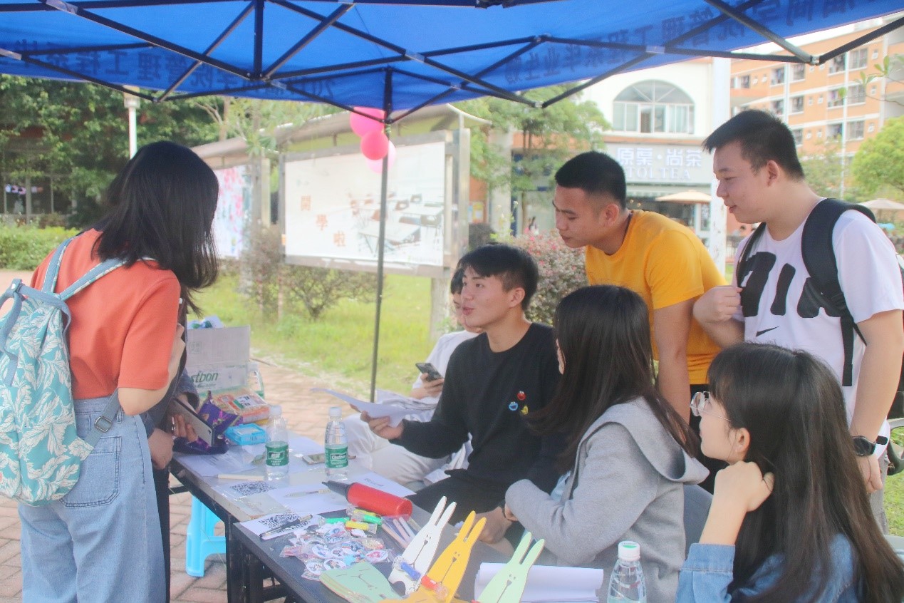 经过事前宣传以及活动当天的现场宣传,不少同学来到摊位,或独自参与答题,或与小伙伴共同完成你划我猜,最后赢取礼品。