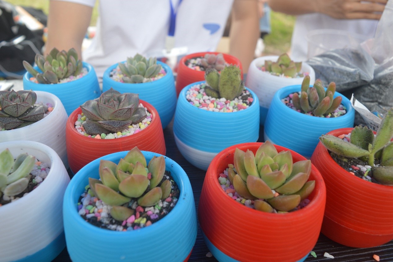17金工一班及太阳城娱乐社会实践部进行的是爱心义卖,出售的有物品分别为书籍、水杯等闲置生活用品,以及金鱼、小乌龟和多肉植物。他们活泼热情地接待每一个经过、驻足的同学,最终,将会把一切所得捐出,赠送给山区小朋友或有需要的人们。