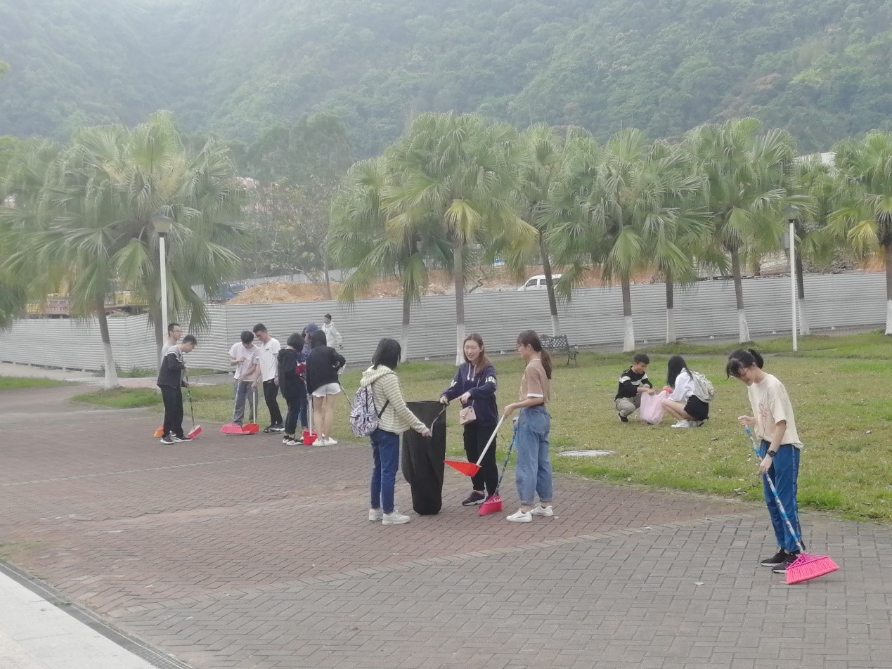 接下来,镜头离开东区饭堂,18电子商务专业的同学们在校内进行清洁,地点有宿舍楼下、教师办公室、球场、图书馆至升旗台间的区域等等。与此同时,18物流二班的同学们正在免费代拿快递的途中奔波着,只需扫描他们推文下方所附二维码,将取快递所需信息作为内容进行留言即可。