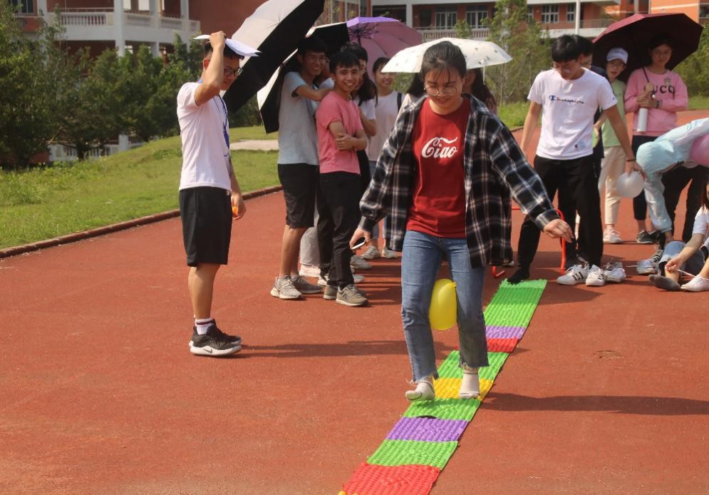 视线转到“穿越呼啦圈”的比赛现场,参赛的同学们手拉手,整支队伍拧成了一股绳,在欢笑间争分夺秒而又有条有序地穿过呼啦圈。