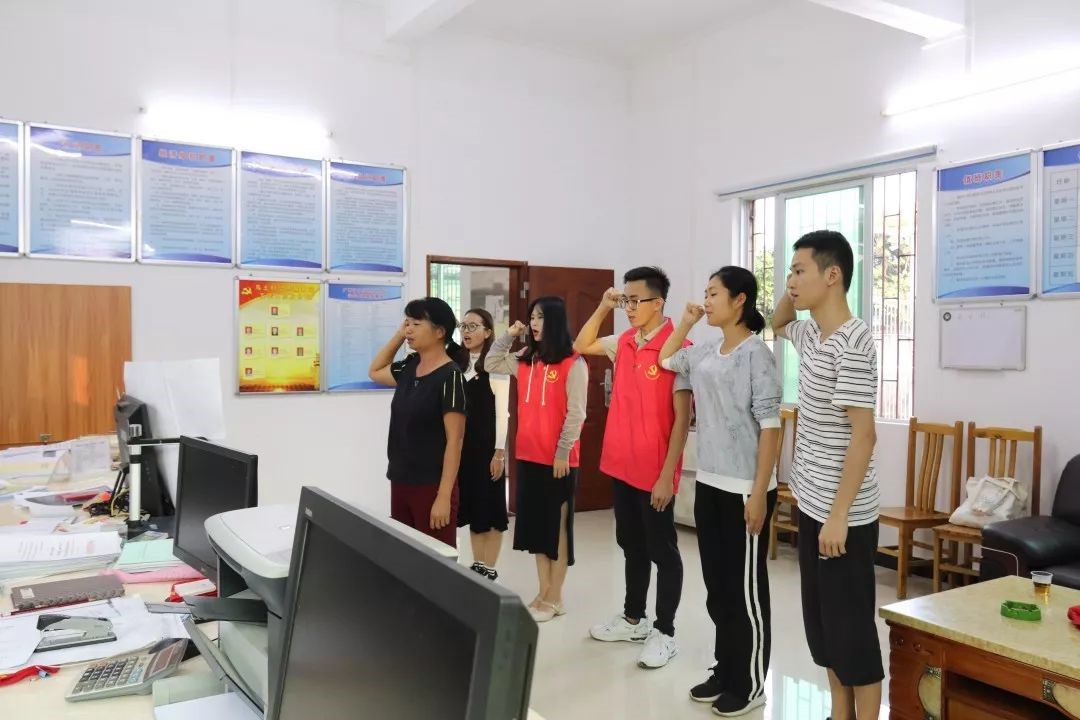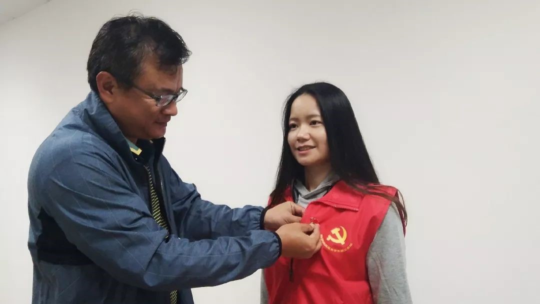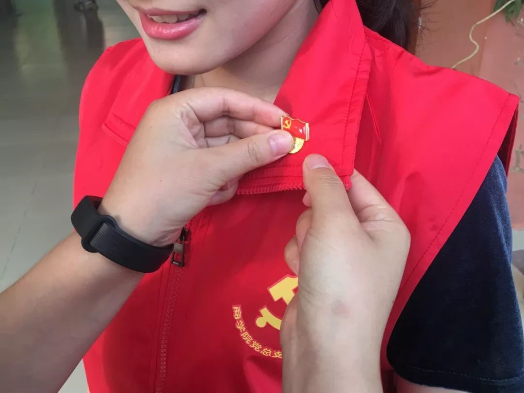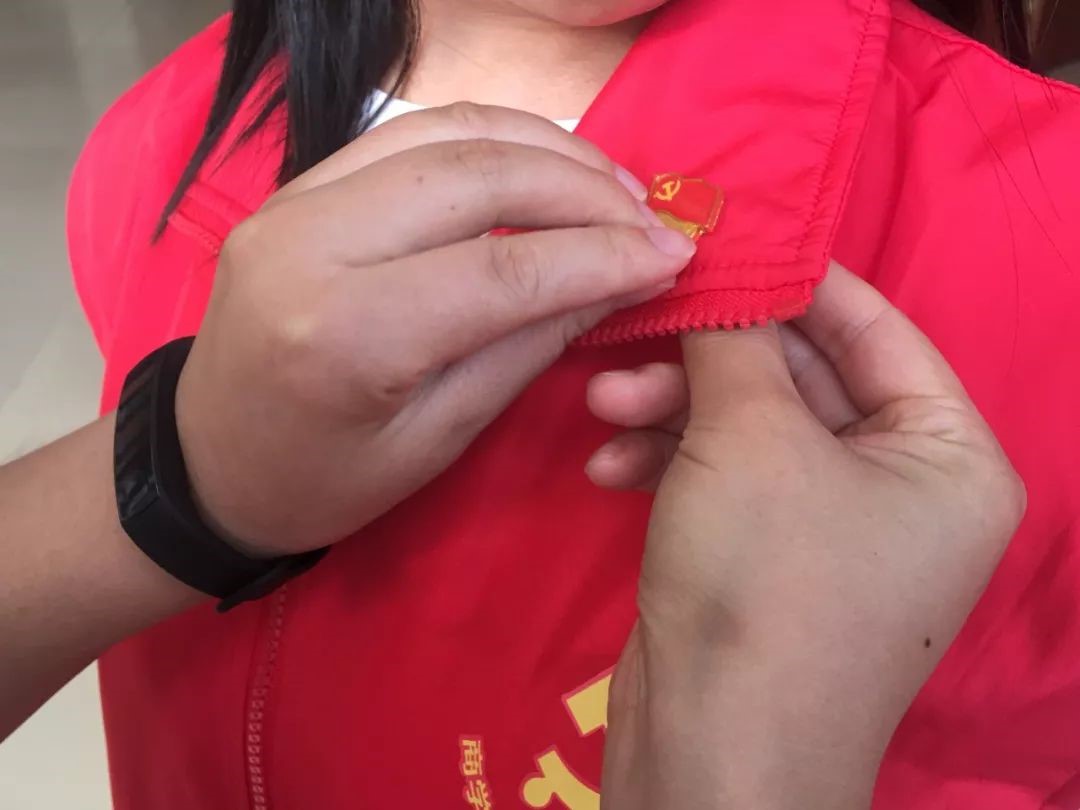 在访谈结束后,潘主任亲自带领我们宣誓,亲自为我们佩戴上党徽,重温成为一名党员的光荣瞬间。