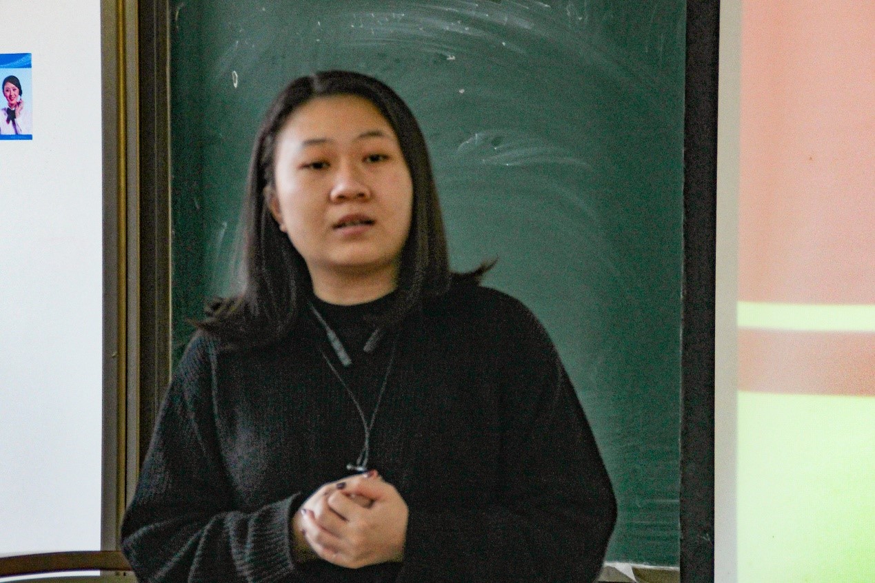 最后,梁洁敏学姐上台分享,她讲述了自己的老员工活经历并分享了考研成功的经验和方法。她强调学习的重要性并建议同学们应当努力学习自己选择的专业,保证专业知识水平。另外也要把握好学习与社团活动两者的平衡点,不能因为社团活动耽误学习,也不必因死读书而错过在活动中展现与提升自我的机会。她坚信,人生是一场直播,既然选择了就不能后悔,要坚定地做好每一件事,成功的背后努力比幸运更重要。