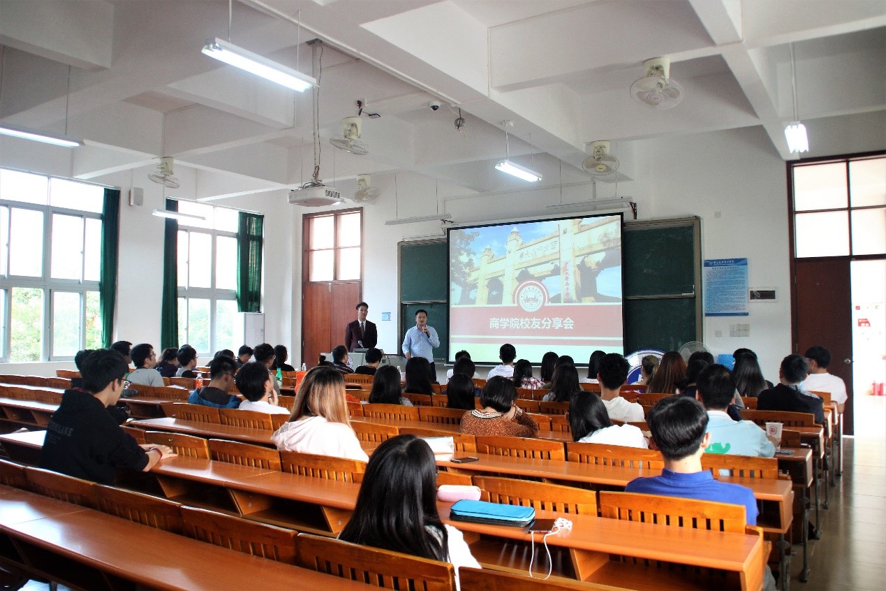 分享会伊始,由赖永林学长上台分享创业成功的经验。他说到大学期间他曾加入多个社团并且积极参加各类活动,这些经历不仅带给了他很多美好的回忆,也为个人提供了深厚的知识与经验的积累。赖永林学长还跟同学们分享了他的创业历程,老员工毕业后也许会感到迷茫,但认准目标后只要肯努力,脚踏实地做好每个阶段的事情,就会有所收获。