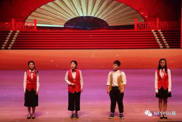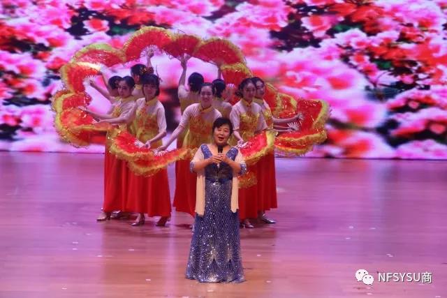 肖红老师带来的是经典爱国歌曲《祝福祖国》,歌声绕梁、声动梁尘,伴舞者着装鲜艳,给人以视觉的冲击;歌舞结合表达了南苑学子的爱国精神,也展示了毕业生对老师们锁在心头理不清的感恩。
