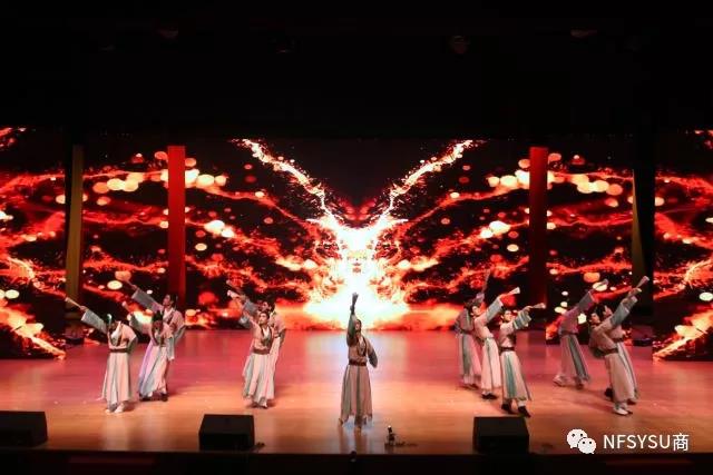 南艺舞团表演的是舞蹈《梦归湖畔》,在她们流水行云的舞步之间,袖子如流水,轻轻一挥,四年老员工时光悄然逝去,流露出她们对于时光如水流逝的懊悔与惋惜。今晚,他们舞出了南苑情怀;日后,我们绽放南苑风采!