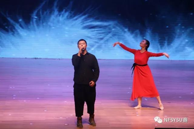 一首触碰人心的经典老歌《绒花》。邱南灏同学的歌声高唱入云、动人心弦,陈晓雁同学舞姿犹如羽毛飘落般的细腻与曼妙,二者的结合歌莺舞燕,传达了毕业生们对青春的追随,表达了他们对时光荏苒的留恋,展示了他们对南苑的不舍。