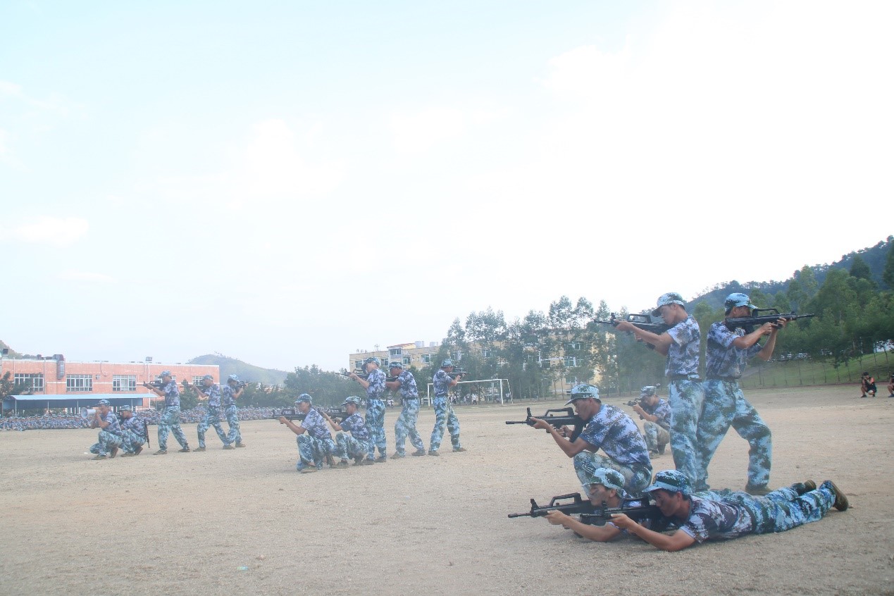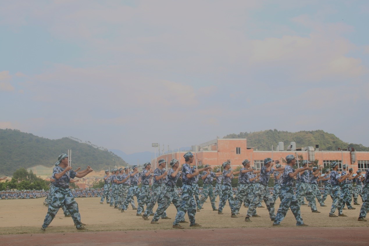 整齐醒目的绿色方阵,坚定不移的挺拔军姿向大家展示了十多天来的磨练成果喻董事长亲切的挥手是对新生们十多天来的辛苦与奋斗的肯定!