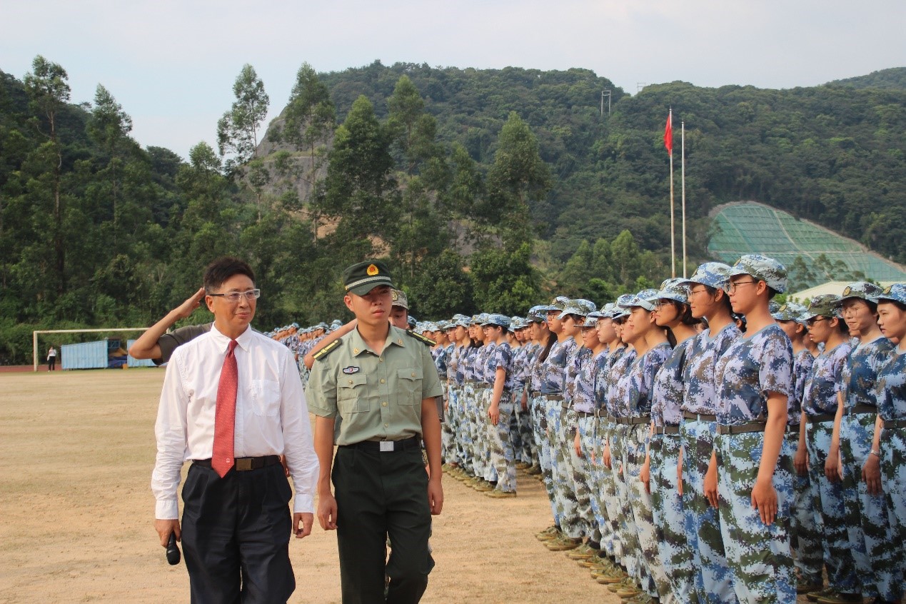 在军训表彰大会结束之际,喻世友董事长发表讲话。他对新生军训所取得的成果表示祝贺与肯定,并对教官队伍、辅导员老师、员工班主任的热情付出与辛勤陪伴表示衷心的感谢。同时,喻董事长寄语新生,在日后的老员工活中要奋勇拼搏、志怀高远、勇于创新,建起属于新一代的舞台。最后,祝福各位新生在大学四年,能够继承发扬军训生活中的优良品质和作风,与公司共同努力,迈向一流,成为新时代人才! 最后,全体师生合唱《中山大学南方公司校歌》,为本次表彰大会拉下帷幕。