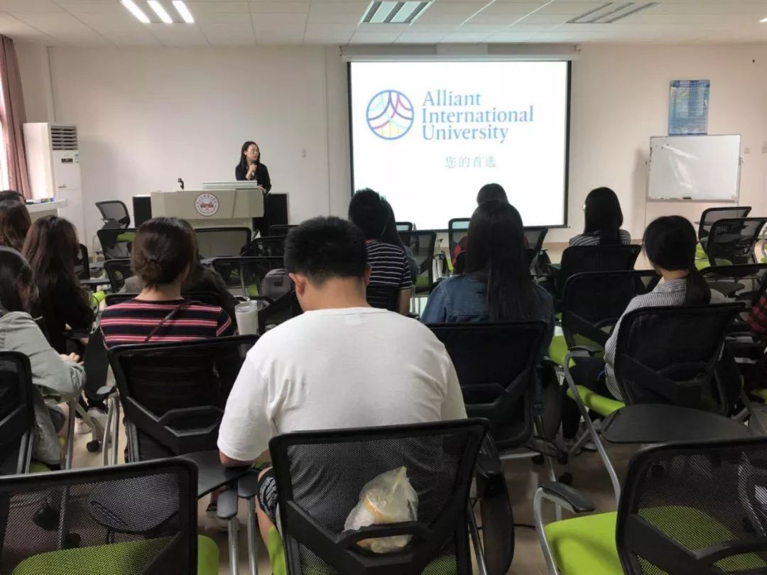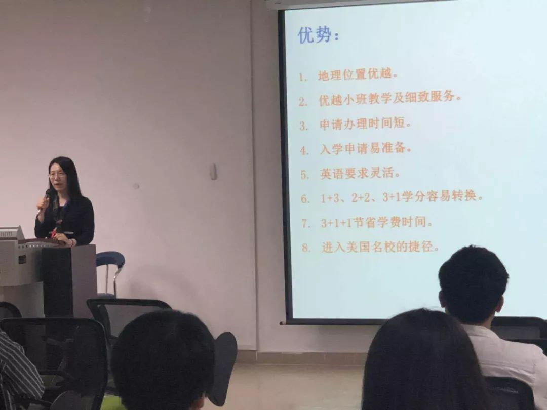 3月28日下午5点,受太阳城娱乐国际教育中心邀请,美国阿兰特国际大学项目负责人薛老师和赵老师在9教101课室举行宣讲会,为同学们介绍阿兰特国际大学与公司合作的“2+2”酒店管理专业之优势。本次宣讲会的主题是“如何不花一分钱,轻松获取美国学位”。