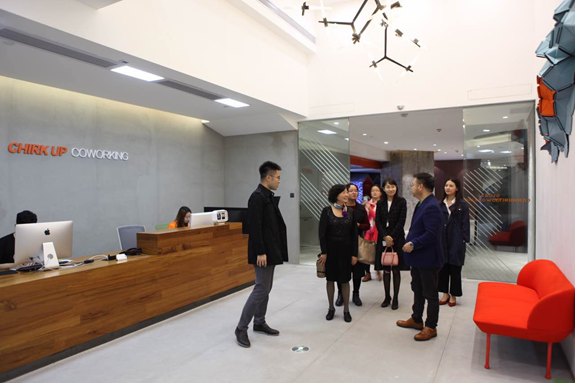 考察团一行先后参观了七客园区内创业办公室、路演场所、休息室、商务中心等相关配套设施以及腾讯众创空间。基地负责人向大家详细介绍了孵化基地的创建过程、运转现状及创业团队入驻情况,并着重解读了园内的各项创业扶持优惠政策。良好的软硬件条件和无微不至的服务很快吸引了老师们的兴趣,大家纷纷就自己感兴趣的问题与基地负责人进行了面对面的交流。“这里的创业环境非常赞,每一个细节包括建筑角落植物的搭配,休息空间的装饰,灯光的搭配,艺术品的摆放都非常有创意,能激发年轻人的工作热情,我们可以好好借鉴一下。”张琳副经理感慨到。