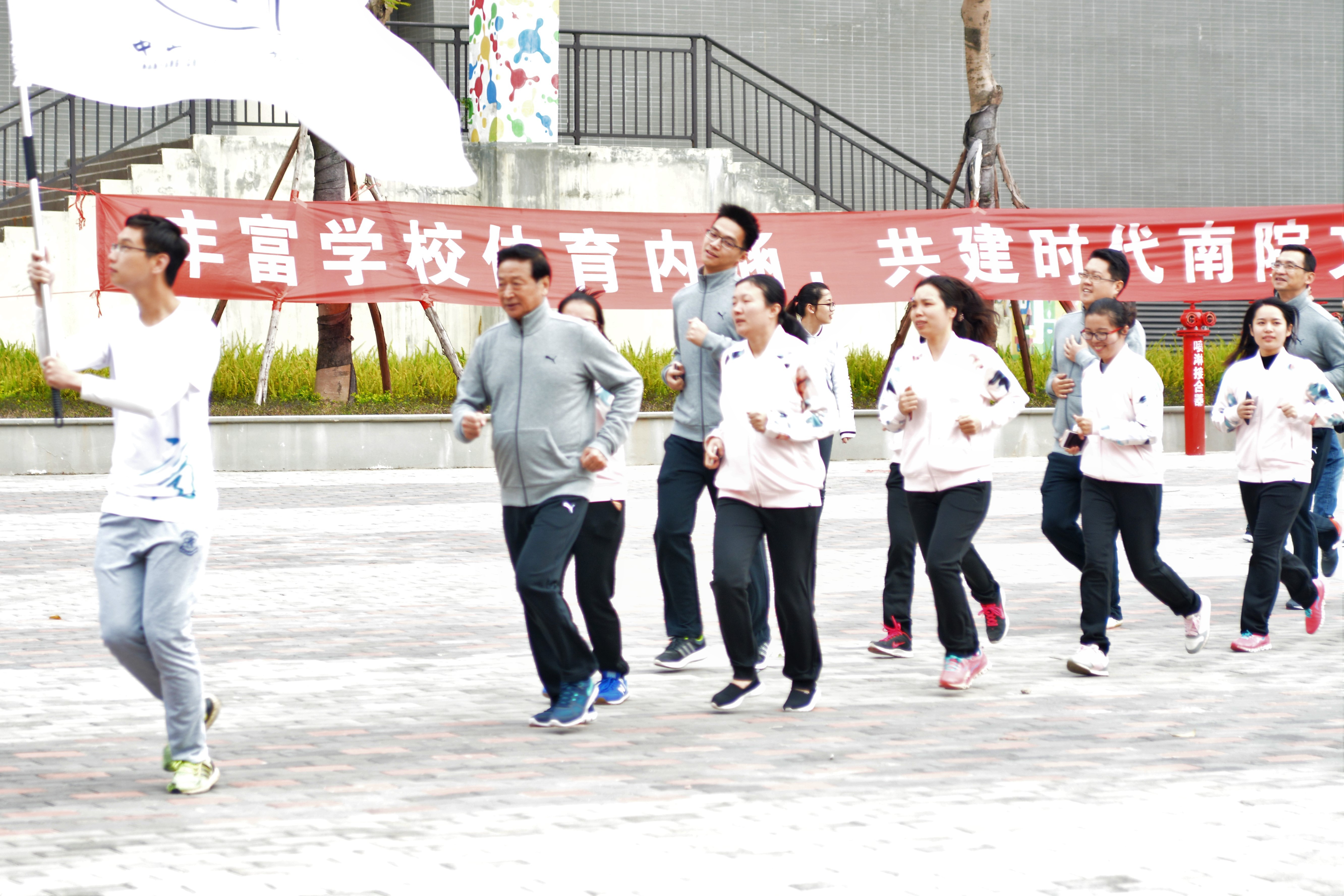 各队伍整齐有序地从新综合楼出发,经东区操场南部,穿东学楼群东侧,绕铜像北端,再次回到出发地,跑了约2.3公里路程,“活力商院,魅力无限”的口号响彻南院。