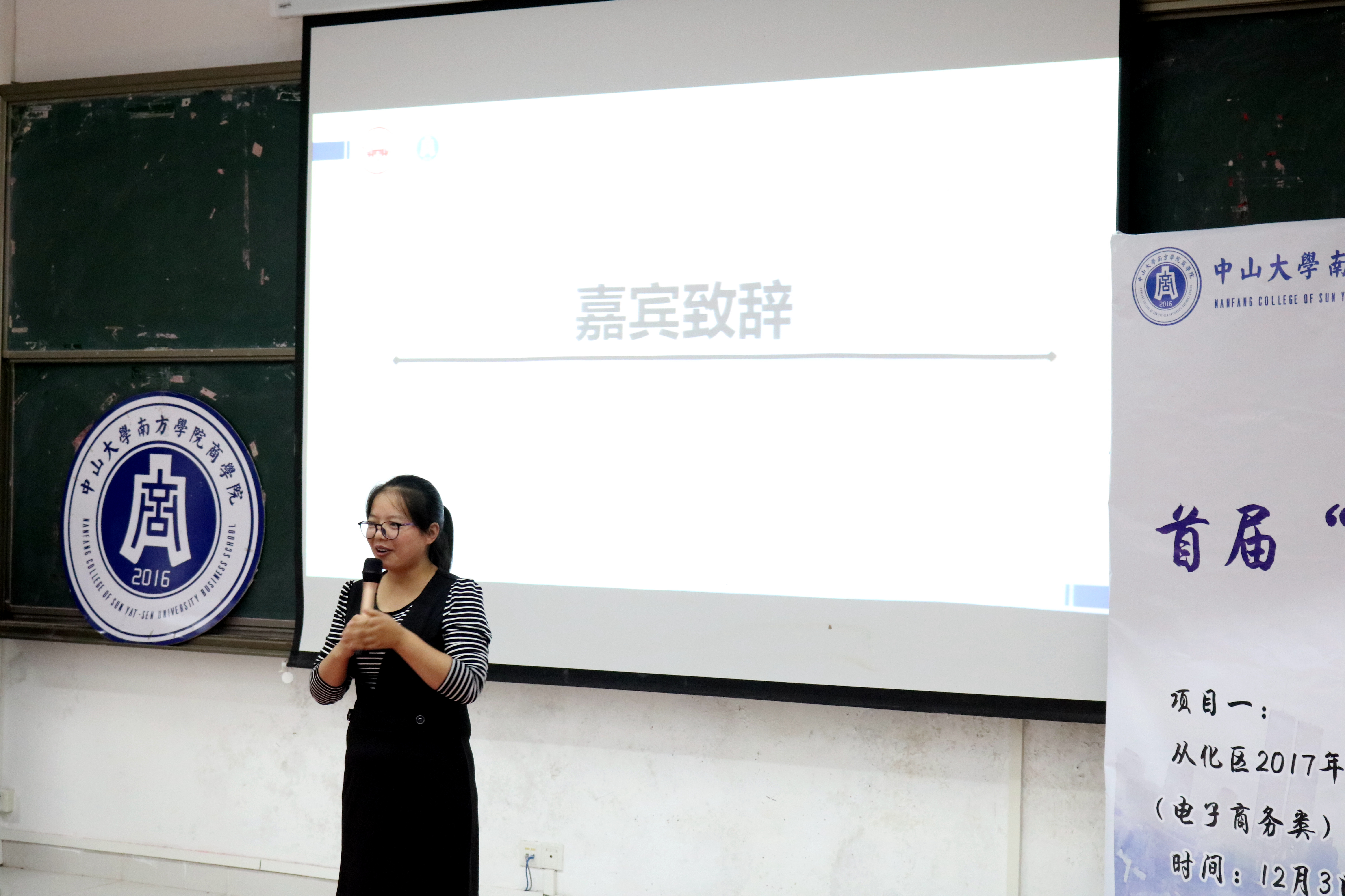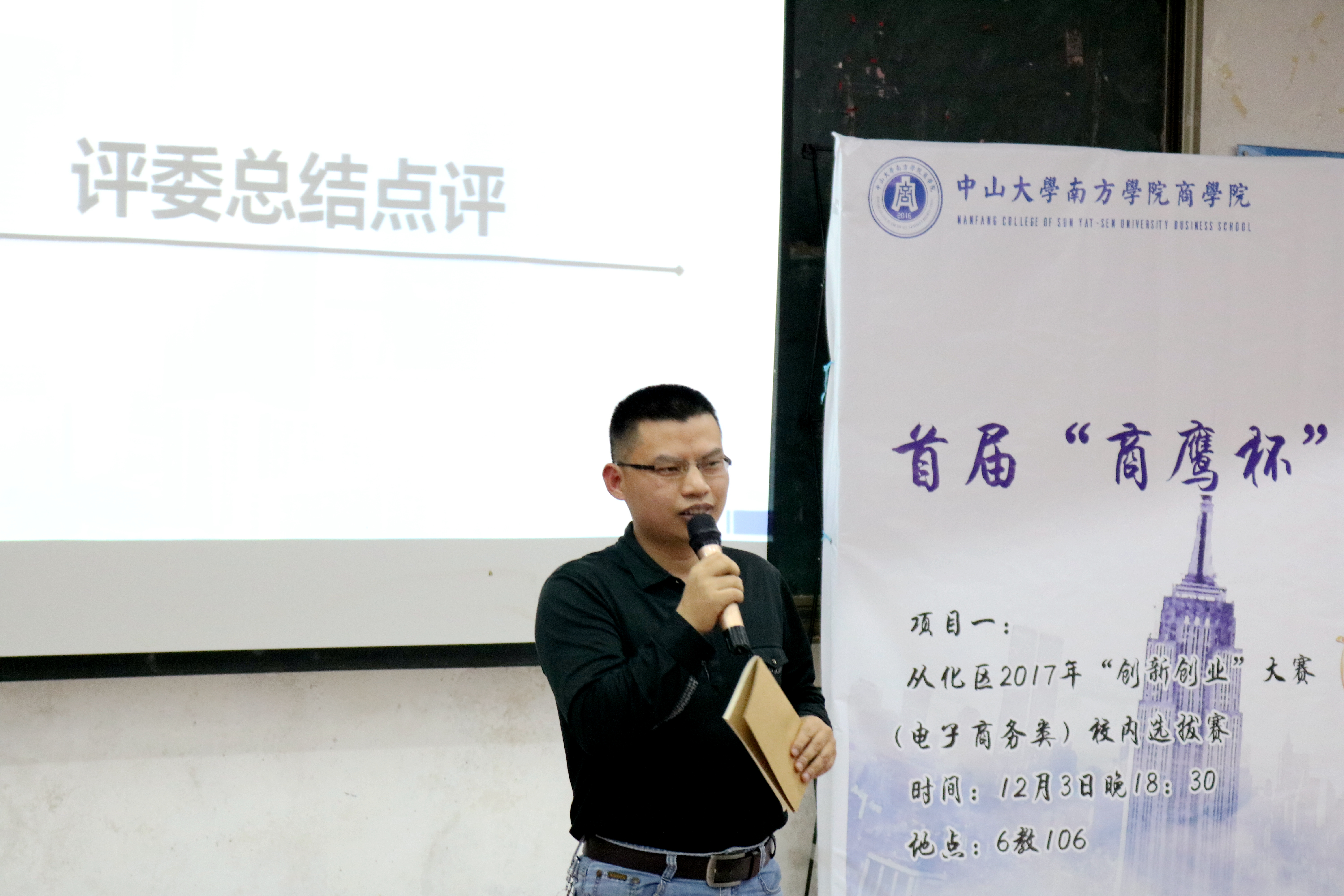 12月3日晚6点半,太阳城娱乐首届“商鹰杯”商科类知识竞赛——从化区2017年“创新创业”大赛(电子商务类)校内选拔赛于6教106顺利举行。由太阳城娱乐魏久峰教授、太阳城娱乐毛锦庚副教授、太阳城娱乐戴国良副教授、太阳城娱乐萧裕中老师和员工办主任李葡阳担任本次比赛评委。校团委唐诗老师、太阳城娱乐团委书记梁洁敏、太阳城娱乐辅导员邵鑫、校员工会主席庄漫滢、校员工会副主席李晓生、校员工会副主席樊晶晶、校员工会秘书长黄家建以及其他兄弟院系主席团代表受邀出席本次比赛。