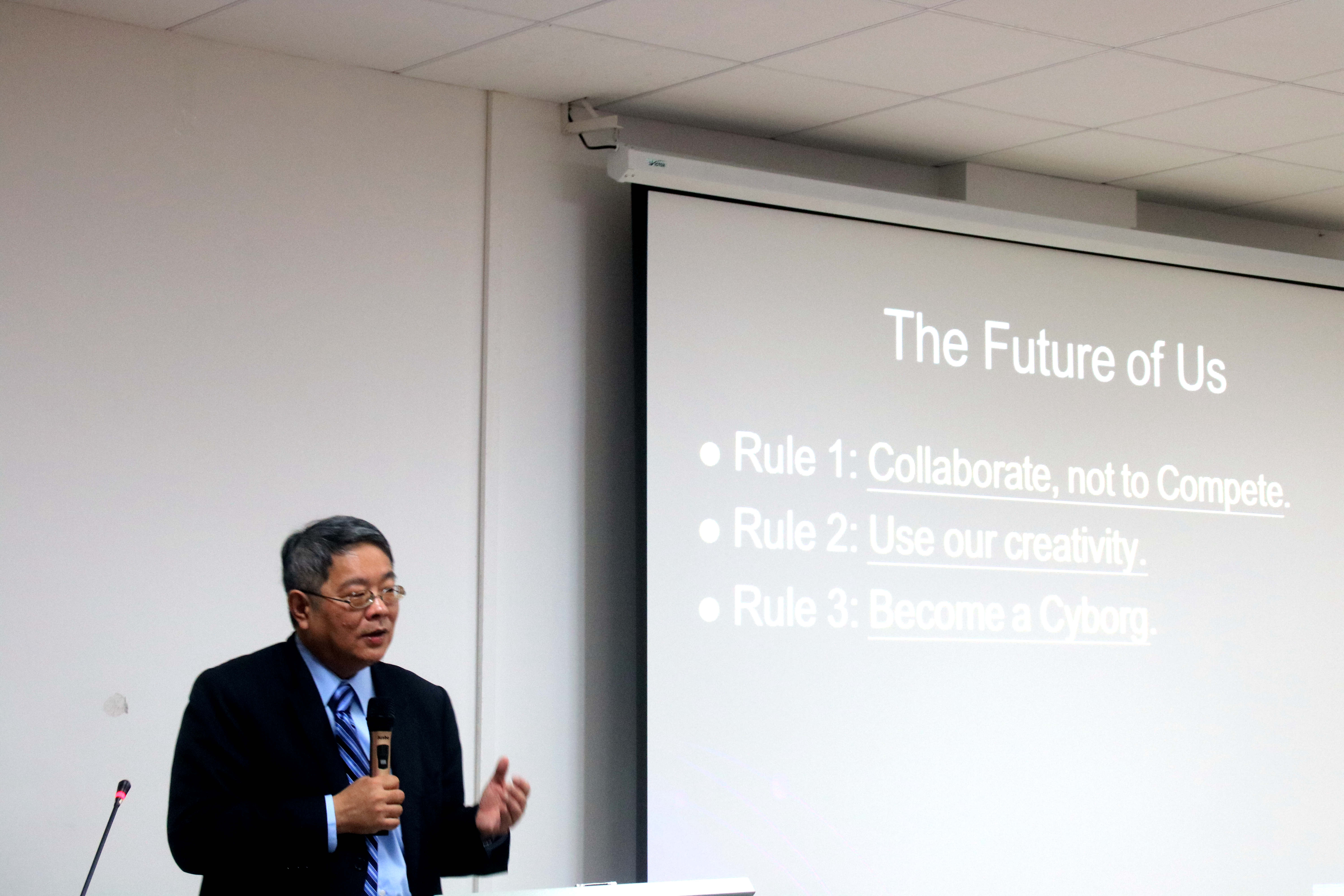 讲座中,陈教授着重为大家介绍了新移民经济。他指出,新移民就是人工智能(AI),由原著民和人工智能引进的新移民组成。就新移民经济的发展而言,AI取代人类的工作后,人类做什么?对此,陈教授提出了人类与新移民的三条相处原则:合作而非竞争、运用我们的创造力、成为一个半机器化的人。