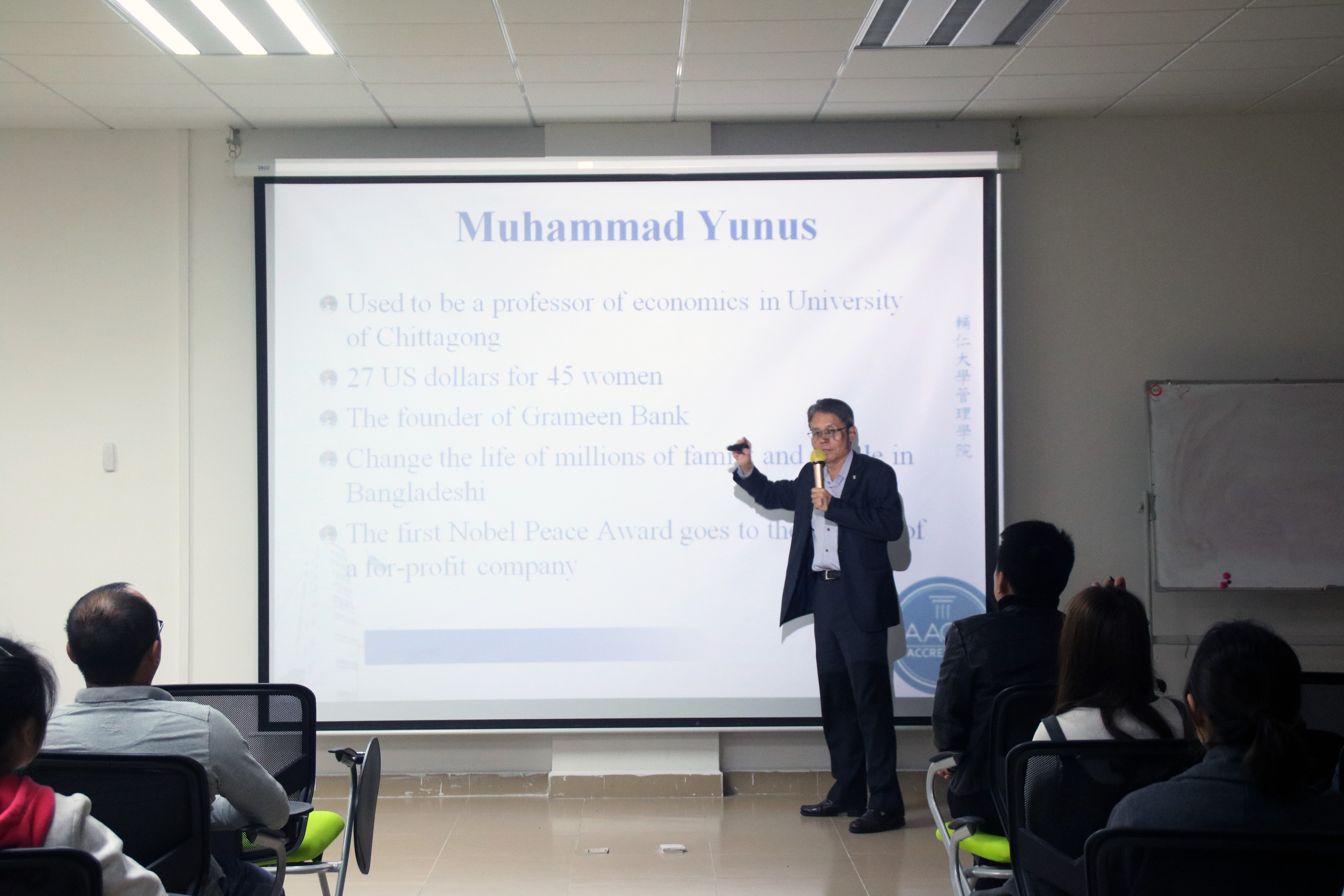 4月12日下午,由台湾辅仁大学国际事务副董事长李天行教授主讲的关于“探究现今社会创新与社会企业的发展”讲座在9-101开讲。太阳城娱乐师生慕名前往,演讲现场座无虚席。